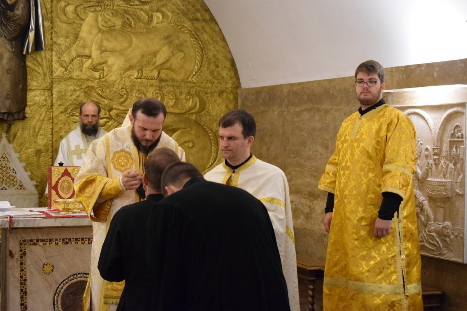 Másnap, csütörtök reggel a Szent Kelemen-bazilikában végezhettünk Szent Liturgiát, majd nézhettük meg az itteni ásatásokat. Ezután egy intenzívebb városnéző séta következett, ami több híres látványosságot is magába foglalt, mígnem estére a csoport megérkezett a Pápai Görög Kollégium templomához és a zarándoklat egyik, legalábbis számomra, legkedvesebb pontjához. Itt ugyanis egy vecsernye keretében Dudás György miskolci egyházmegyés papnövendéktársammal ketten részesülhettünk az alszerpapi rendben. A vecsernyére megtelt a templom, ugyanis a bő 40 fős nyíregyházi csoporton kívül sok kedves diáktárs érkezett a Pápai Német-Magyar Kollégiumból és a Russicumból is. Itt a szép vecsernyét egy jó hangulatú szeretetvendégség követte.
