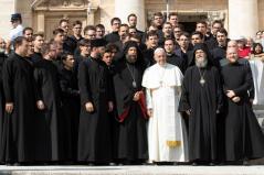 A szerdai nap szintén érdekesnek ígérkezett. Ez ugyanis mindig a pápai audienciák, az általános kihallgatások napja. Reggel a csoport elfoglalta igen előkelő helyét a Szent Péter téren, egészen a pápai emelvényen, a Szentatya közelében. Ferenc pápa ez alkalommal az etióp királyné tisztviselőjének megtérése kapcsán az evangelizációról, a misszió kérdéséről beszélt. Ehhez elengedhetetlen feltétel, hogy ki tudjunk lépni saját határaink, félelmeink, sokszor előítéleteink árnyéka mögül. Emlékeztetett ugyanakkor arra is, hogy mindennek nem én, az evangélium hirdetője vagyok a főszereplője, hanem a Szentlélek. Keresve sem találhattunk volna ennél találóbb üzenetet szemináriumi zarándoklatunk számára.