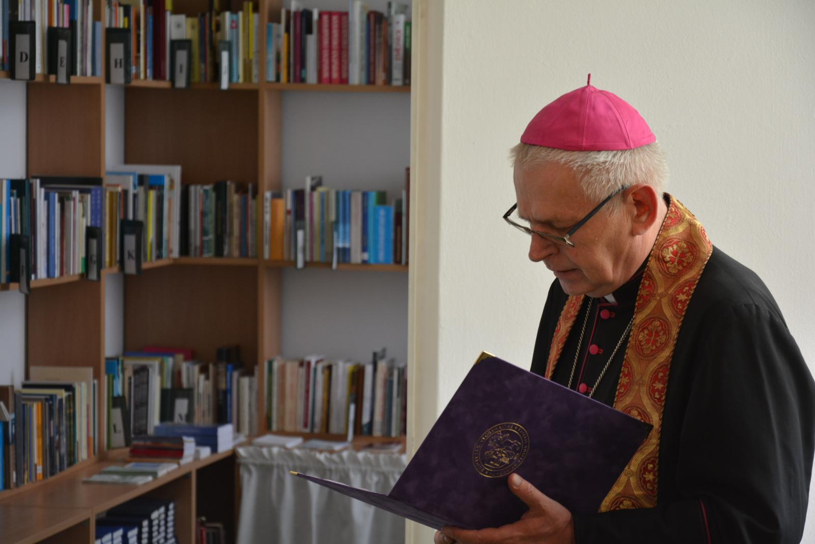 A felsorolt felekezetek mellett a Szent Atanáz Görögkatolikus Hittudományi Főiskola Könyvtárának igazgatója, Dr. Kührner Éva válogatásában számos görögkatolikus művészettörténeti és lelkiségi irodalommal is gazdagodott a könyvtár. Pavlics Tamás börtönmúzeumi főelőadó egy további kötet elhelyezését javasolta a könyvtár állományába, amikor Hajdú Miklós 1989-2020 között vezetett börönlelkészi szolgálatának Historia Domusát ismertette, mely a közelmúltban jelent meg a Börtönmúzeum 8. köteteként. Kecskés Attila börtönlelkész az emléksarok tárlójában elhelyezett személyes használati tárgyakon keresztül elevenítette fel Hajdú Miklóshoz kapcsolódó emlékeit, majd az ünnepség az Egyházi Könyvárak Egyesülésével kötendő ajándékozási szerződés aláírásával folytatódott, melyet püspök úr névadó gesztusa és áldása követett.