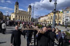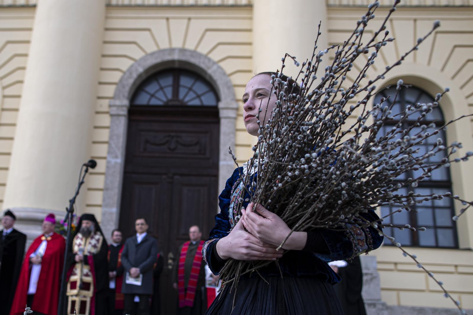 A keresztény világ számára a virágvasárnap, Jézus diadalmas jeruzsálemi bevonulása különleges ünnep. Az ökumenikus liturgiára sokan összegyűltek a Nagytemplom előtt, a Kossuth téren.