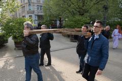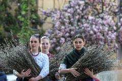A barkaszentelés után útjára indult az ünnepi menet a Kossuth tér felé. Az ünneplő gyülekezet a megszentelt ágakkal a kézben, énekszóval indult a Nagytemplom elé. A rendezvényre idén is több százan látogattak ki.