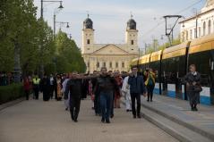 Néptánccal és a dalárdások énekével kezdődött az idei virágvasárnapi körmenet a Déri Múzeum előtt. A hagyomány szerint ekkor vonult be Jézus Jeruzsálembe, a kereszthalála előtti vasárnapon. Papp László polgármester köszöntő beszédében azt mondta: a keresztény hitnek és a vallásnak a mai napig rendkívül nagy ereje van. Hozzátette, külön öröm, hogy Debrecenben a felekezetek együtt ünneplik a húsvét közeledtét.