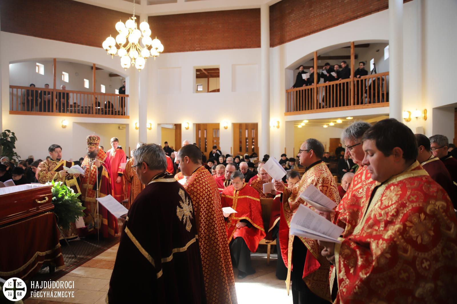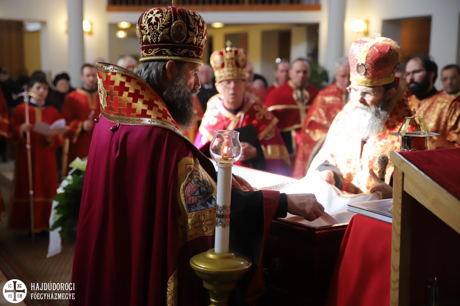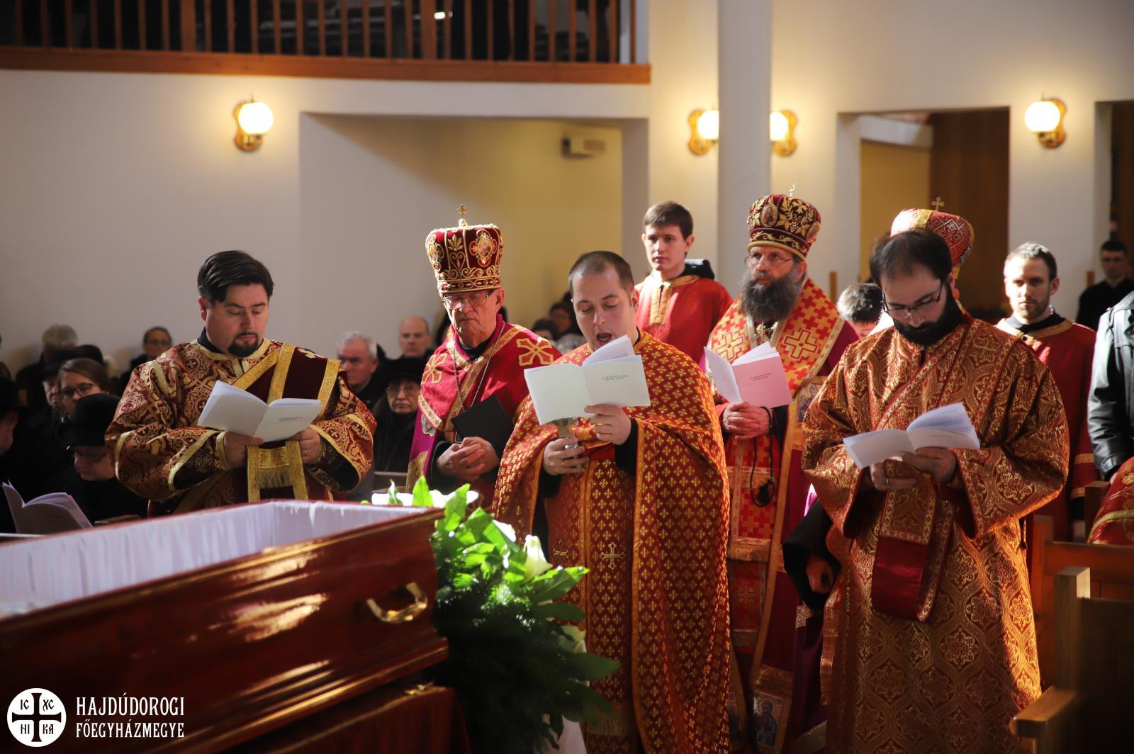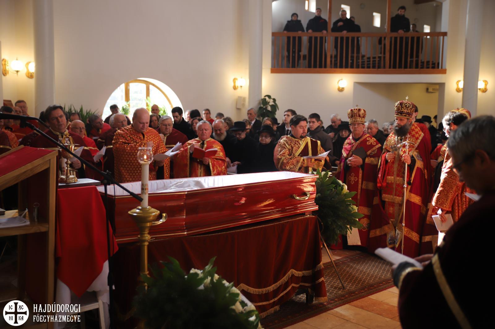 Hét evangélium fölolvasásával, a hozzátartozó himnuszokkal és könyörgésekkel hosszan imádkoztak még utoljára az elhunyt ravatala mellett, sőt, az utolsó földi Szent Liturgiáját is még a holtest jelenlétében végezték el a paptársakkal együtt.