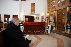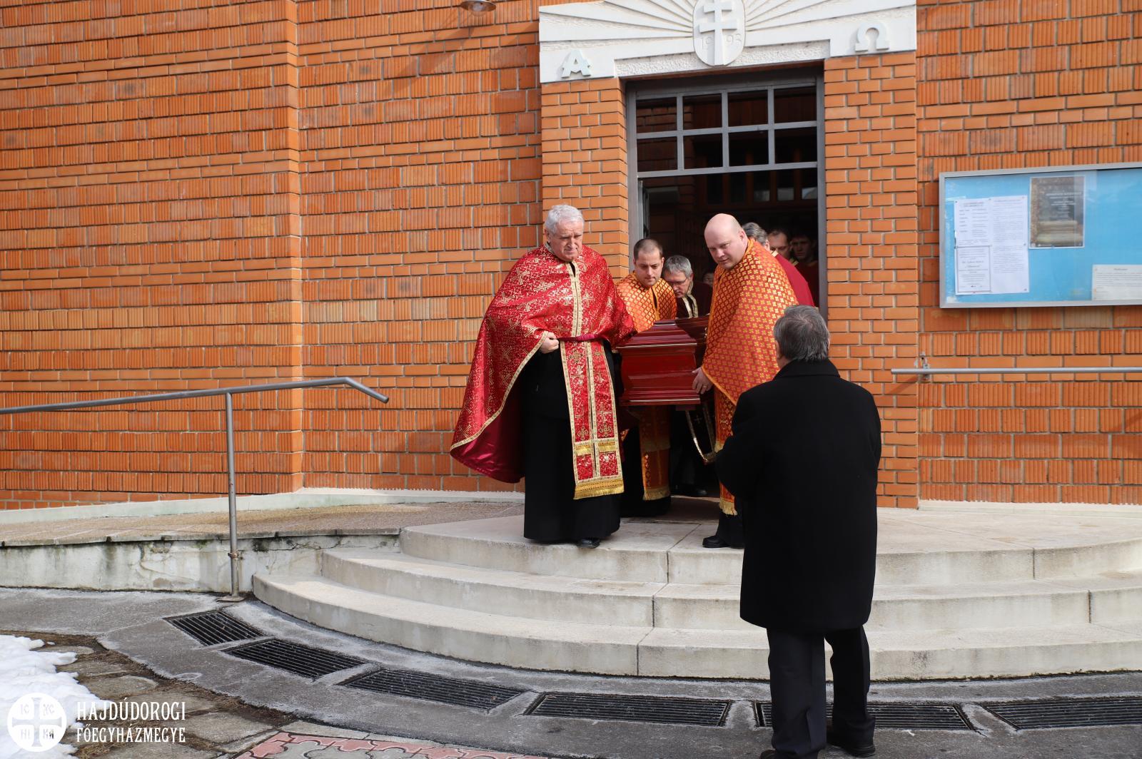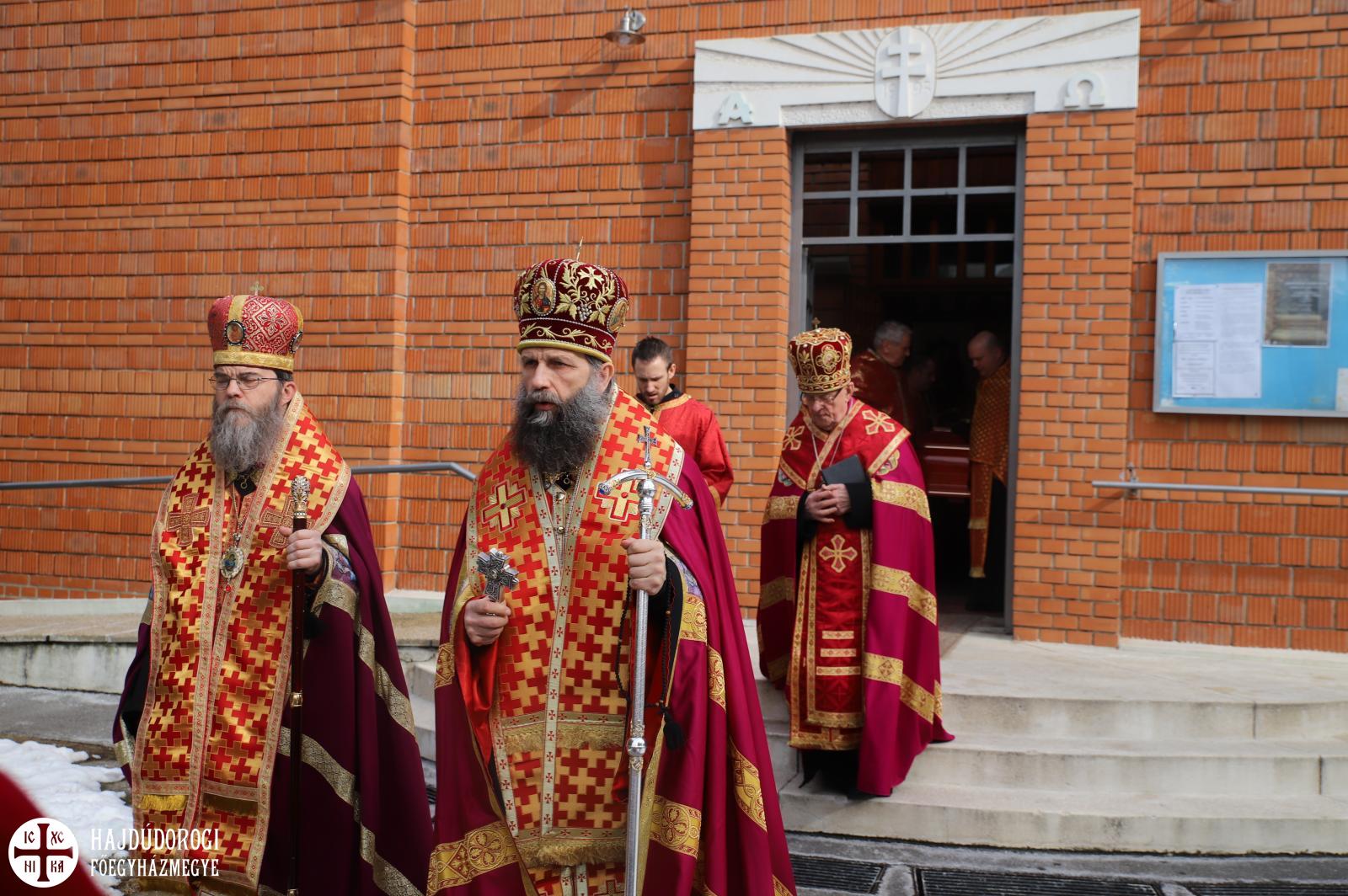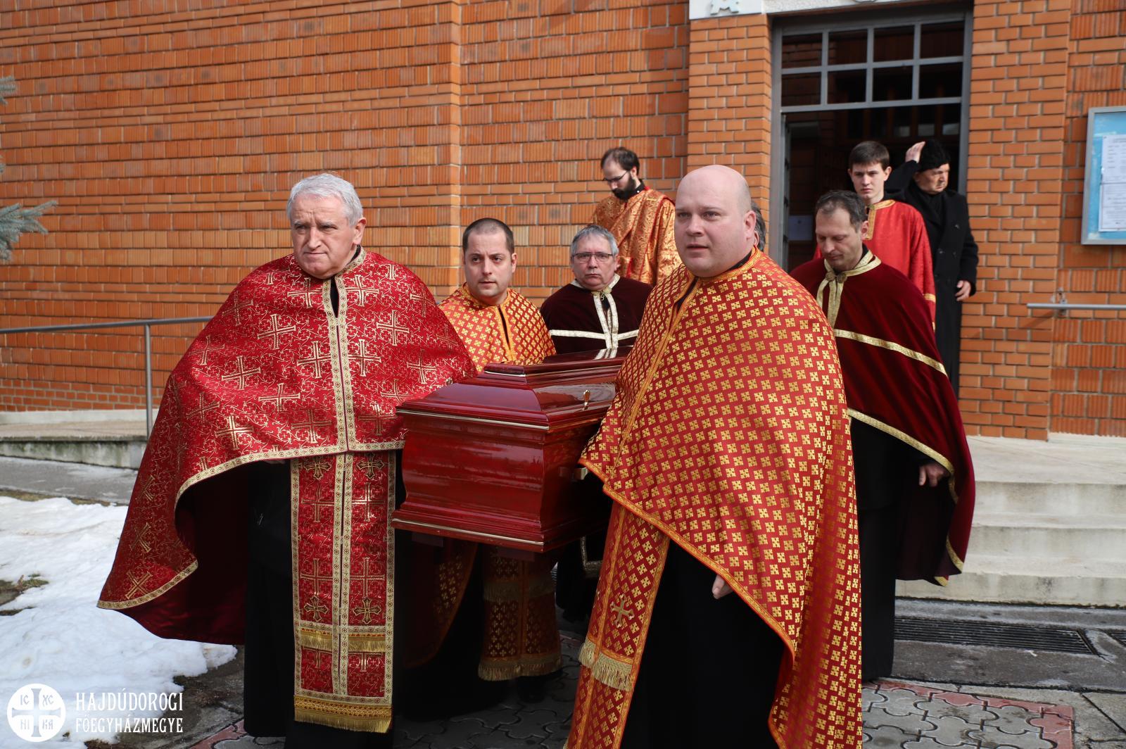 Hét evangélium fölolvasásával, a hozzátartozó himnuszokkal és könyörgésekkel hosszan imádkoztak még utoljára az elhunyt ravatala mellett, sőt, az utolsó földi Szent Liturgiáját is még a holtest jelenlétében végezték el a paptársakkal együtt.