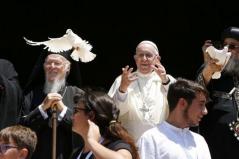 A gyermekekre gondolva nemsokára néhány galambbal együtt szélnek eresztjük békevágyunkat. Békevágyunk emelkedjen magasabbra minden sötét felhőnél! Szívünk maradjon egységben és az Ég felé fordulva, várván, mint a vízözön idején, hogy visszatérjen a remény zsenge olajága (vö. Ter 8,11). A Közel-Kelet többé ne földrészek között kifeszített háborús íj, hanem a béke bárkája legyen, mely befogadja a népeket és a vallásokat. Szeretett Közel-Kelet, oszoljanak el feletted a háború, a hatalom, az erőszak, a fanatizmus, az igazságtalan nyerészkedés, a kizsákmányolás, a szegénység, az egyenlőtlenség és a jogok el nem ismerése sötét fellegei! „Béke neked!” (Zsolt 122,8), igazságosság uralkodjon benned, és Isten áldása legyen rajtad!