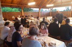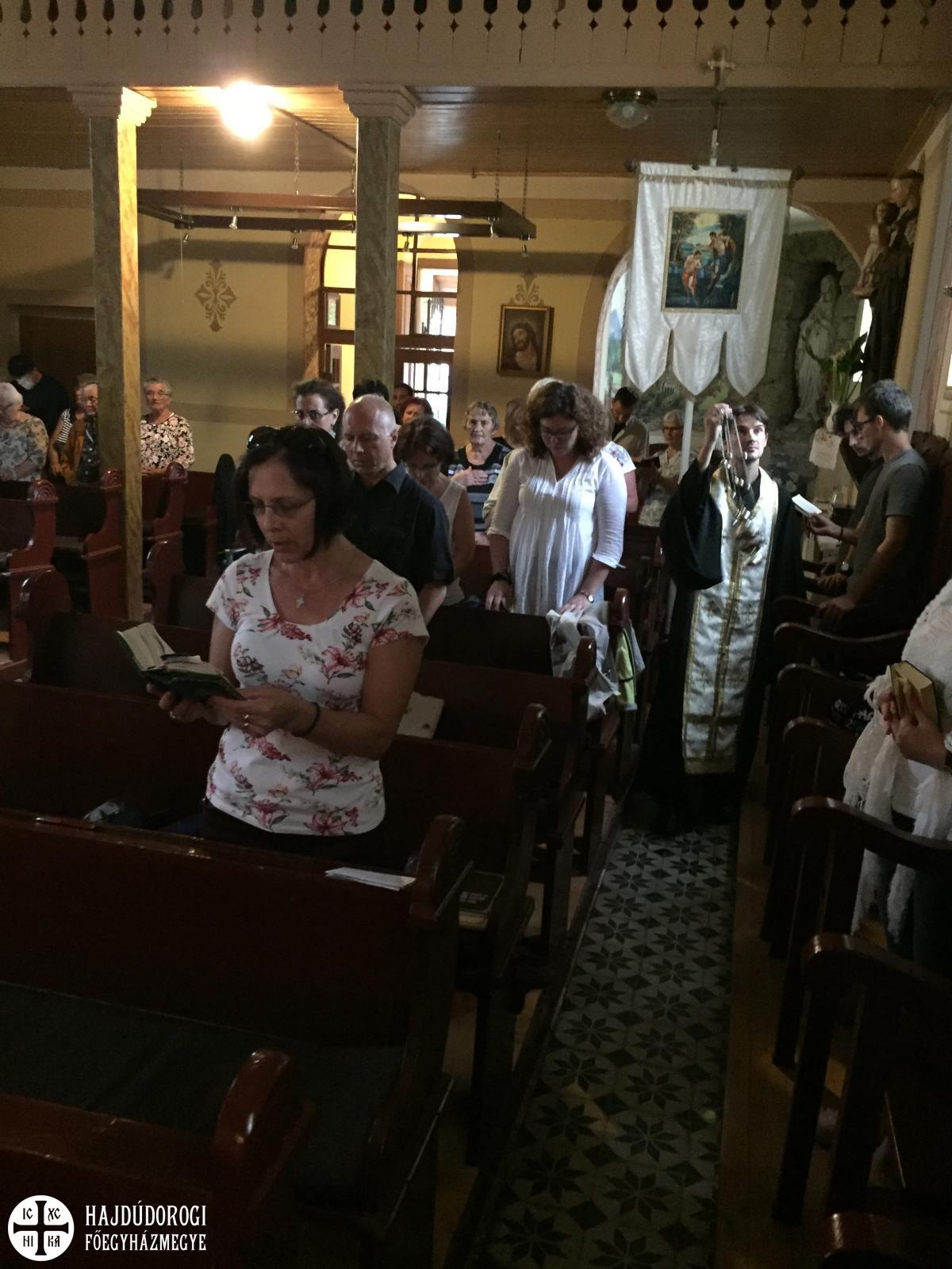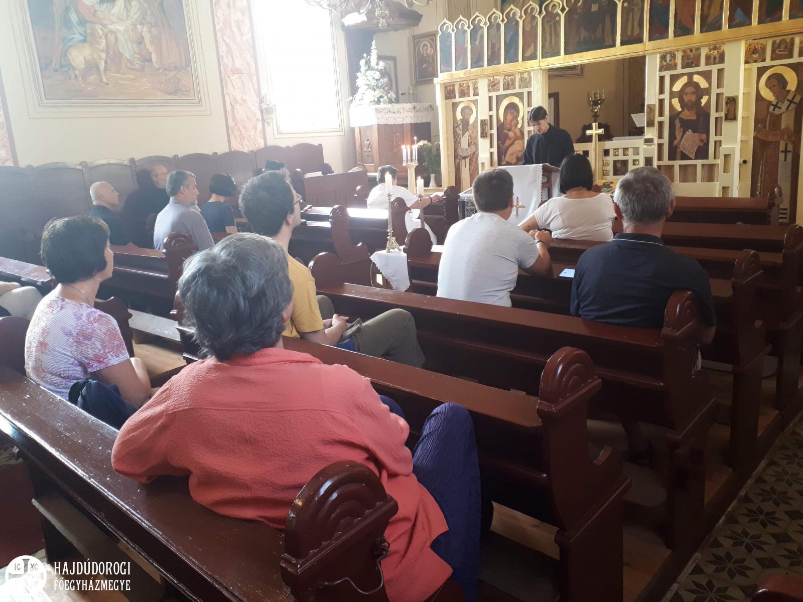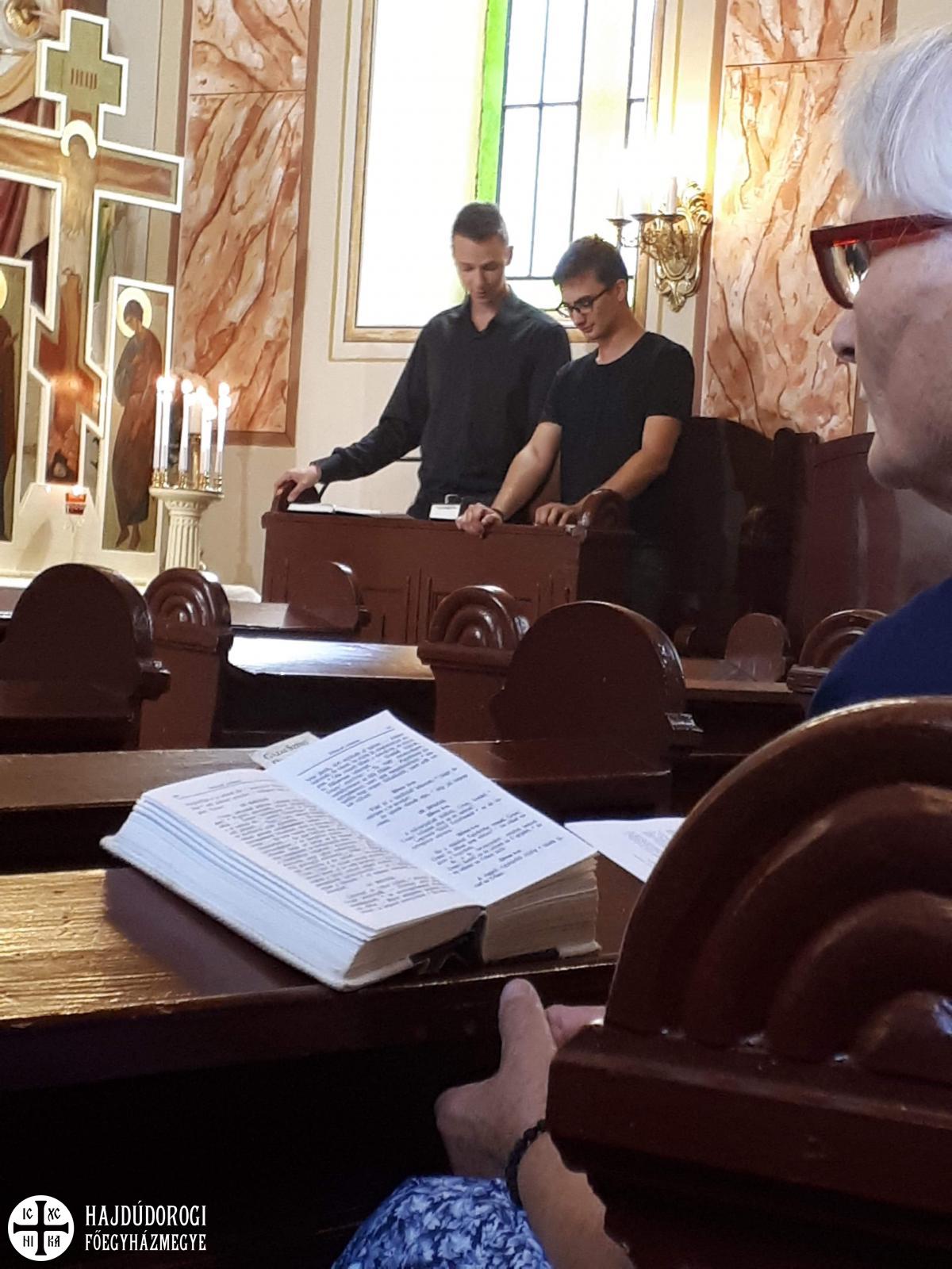 Vasárnap a záró Szent Liturgiát Fülöp érsek-metropolita atya végezte Árpád atyával és a helyi parókussal, Szimicsku Ferenc esperessel, s amelyre nagy meglepetésként Seszták István helynök atya is megérkezett. Az ünnepi Liturgia után lehetőség nyílt a helyi hívekkel is beszélgetni, akik közül sokan a tábor zsolozsmáiba és még a zsoltárolvasásokba is bekapcsolódtak. Végül természetesen agapéval zárult a tábor, amelynek megkoronázásaként születésnapi tortát is fogyaszthattunk, szintén Árpi atya jóvoltából.
