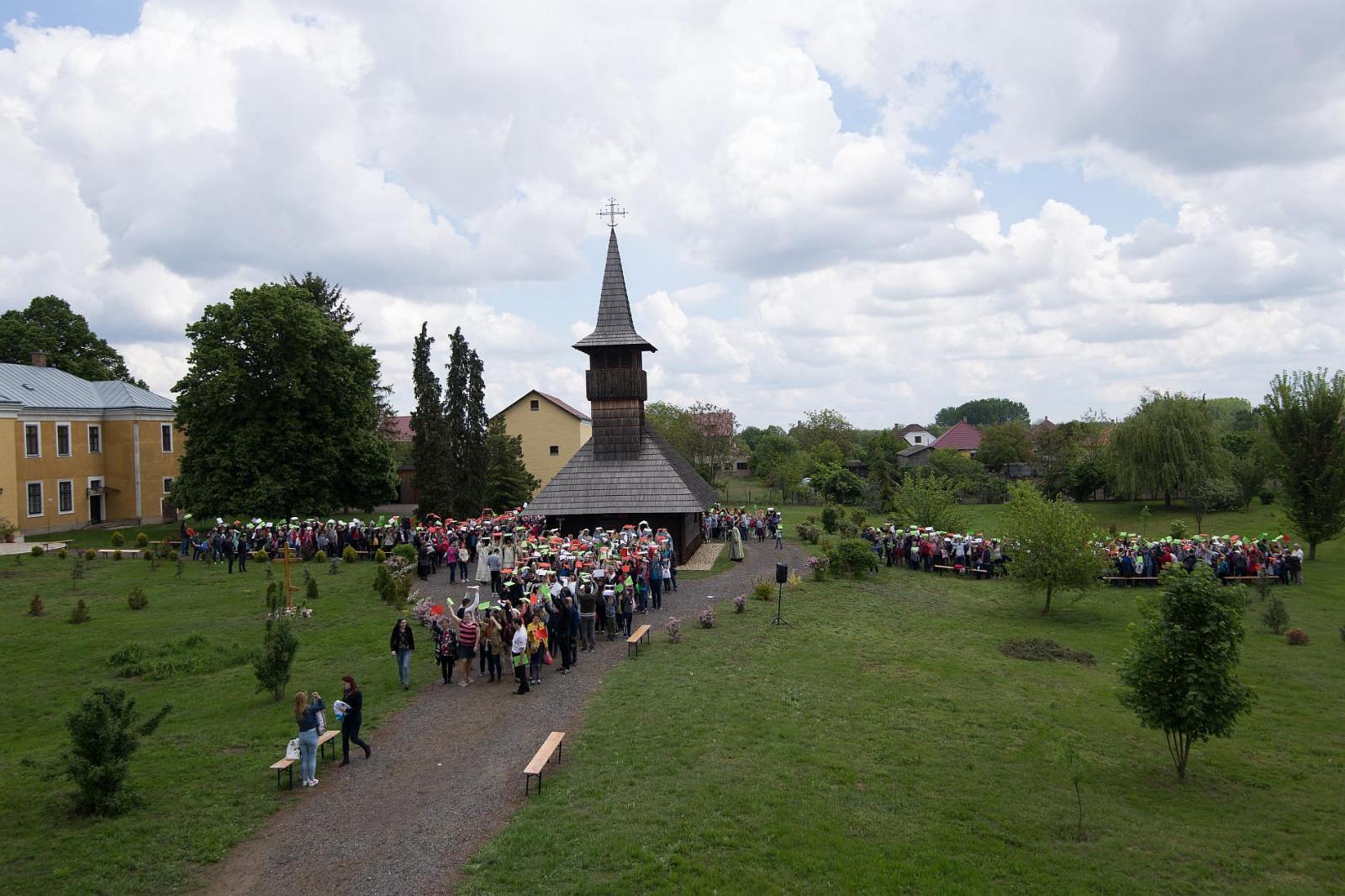Legvégül a szertartást követő körmenet a fatemplomhoz érkezett, ahol az egybegyűltek a templom köré állva, keresztet formálva integettek a drónnak egy élőkép erejéig.