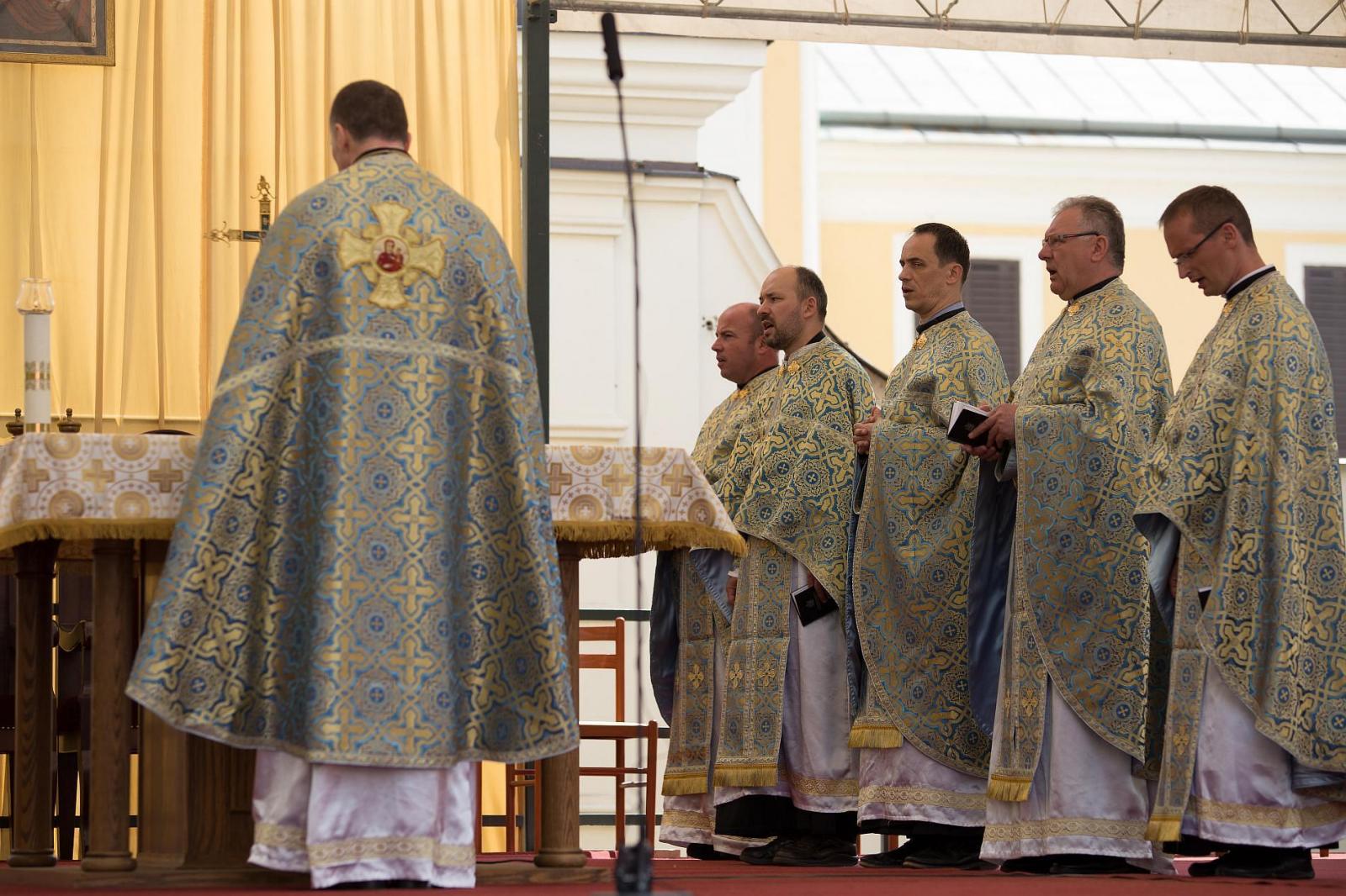 A gyónási és értetkőzési lehetőséggel is sokan éltek ezen a napon, melynek legfontosabb mozzanata a templom előtti téren végezett Szent Liturgia volt. A szertartást dr. Papp Tibor főhelynök vezette, mellette kilenc paptestvér szolgált az oltár körül, köztük Szabó Tamás pasztorális helynök, aki a prédikációt tartotta.