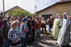 A 100-150 fős nagycsoportokra bontott fiatal zarándokokat a megérkezés – a tematikus napban Sínai-hegyként szereplő – helyszínétől „Mózesek” vezették a kegytemplom, avagy az Ígéret földje felé. Útközben három megállónál dramatizált bibliai történeteket ismerhettek fel, vagy lehettek akár szereplői is azoknak a zarándokok.