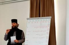 A szombati előadásokat Fülöp metropolita atya és Királyné Kocsis Magdolna tartották. A sztihirák előverseit vettük át, de előtte érthető áttekintést kaptunk a liturgikus zenei világunk különböző műfajairól, hogy jól láthassuk, ebben a zenei rendszerben hol helyezkednek el az előversekként énekelt zsoltársorok. A tanítás egyik kiemelt eleme volt, hogy nem helyes a szertartáson kottából énekelni az előverseket. Ez megköti az éneklő figyelmét, nem tud magabiztosan ráhagyatkozni a megszerzett saját ismeretekre.