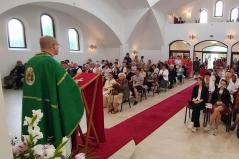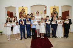 Május 14-én vasárnap első alkalommal volt elsőáldozás az új templomunkban, amely során tizenkét gyermek életében először vehette magához Krisztus testét és vérét. A gyerekek lelkiismeretesen felkészültek életük jeles eseményére, példásan számot adtak tudásukról, s megkönnyebbülten tették le bűneiket is a szentgyónásuk alkalmával.
