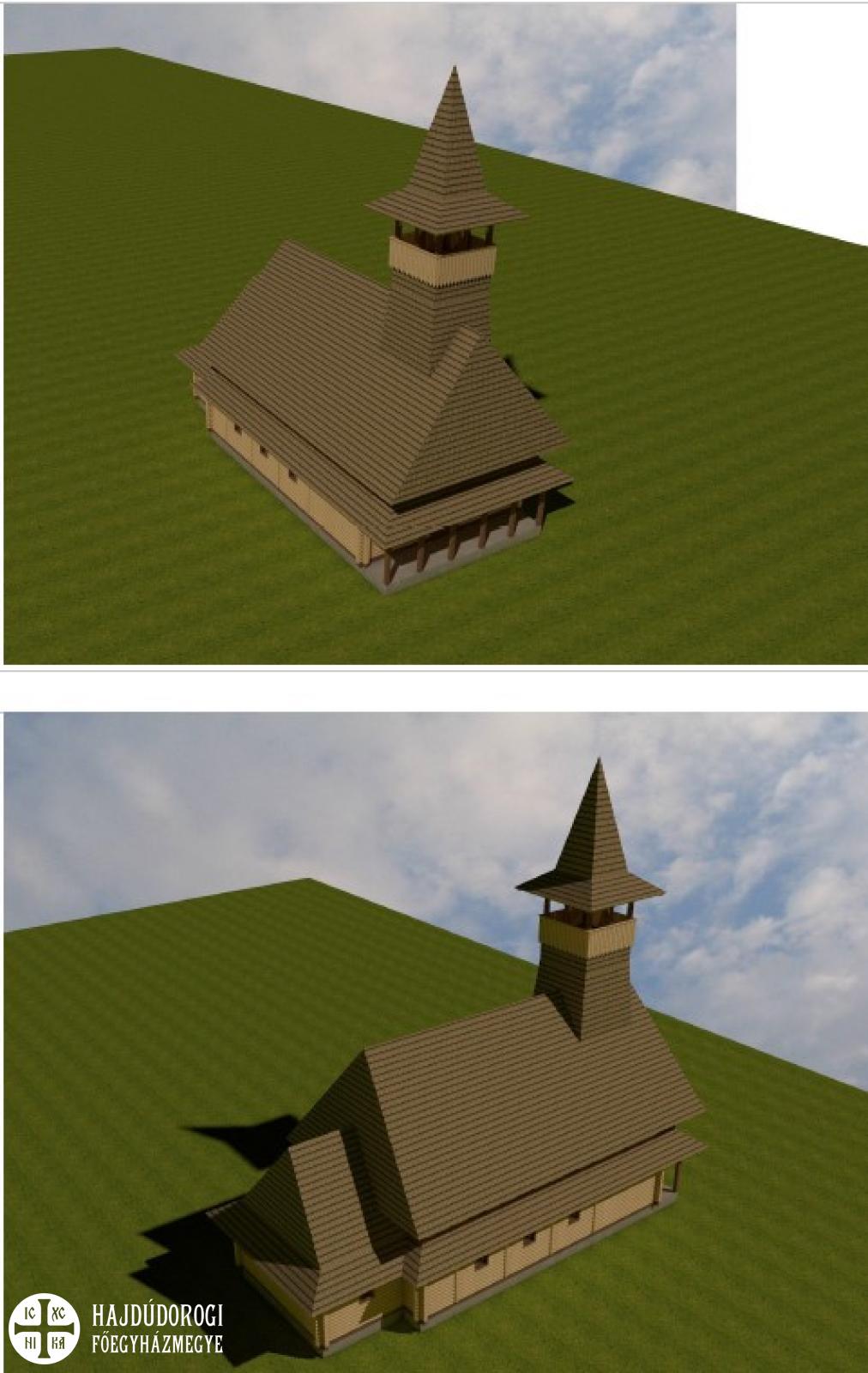 A templom épület keleti tájolású a görögkatolikus liturgiának megfelelő külső körüljárhatósággal. A bejárat tornáccal fedett, melyen belépve a templomhajó és a szentély tárul majd fel, továbbá karzat, és a tornác felett egy erkély is kialakításra kerül. A templom falait köríves faburkolat, tetejét vörösfenyő zsindely fogja fedni.