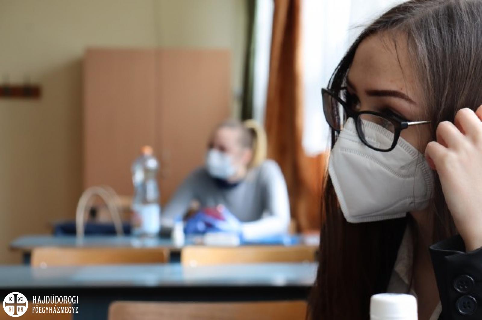Közel 250 tanuló kezdte meg május 4-én az érettségi vizsgát az általunk fenntartott középiskolákban. Kovács Ágnes, a főegyházmegyei oktatási iroda munkatársa korábban úgy tájékoztatott: a rendkívüli helyzet ellenére a tanulók vállalják a megmérettetést. Mind a Leövey Klára Görögkatolikus Gimnázium, Szakgimnázium, mind a Szent Bazil Görögkatolikus Óvoda, Általános Iskola, Gimnázium, Szakgimnázium, Szakközépiskola, Készségfejlesztő Iskola és Kollégium és mind a Szent László Görögkatolikus Gimnázium diákjai is megmérettetnek. Ez utóbbiba 105 diák érkezett hétfőn reggel, hogy számot adjon tudásáról. A pedagógusok és a tanulók is könnyedén vették az akadályokat az első reggelen.