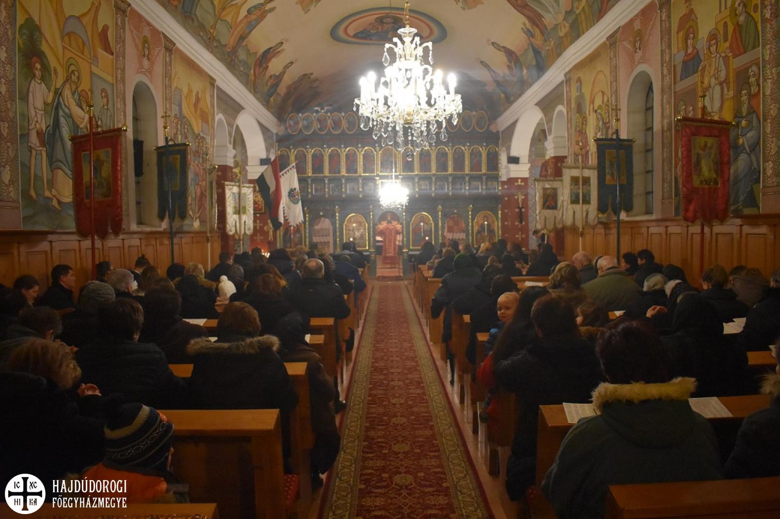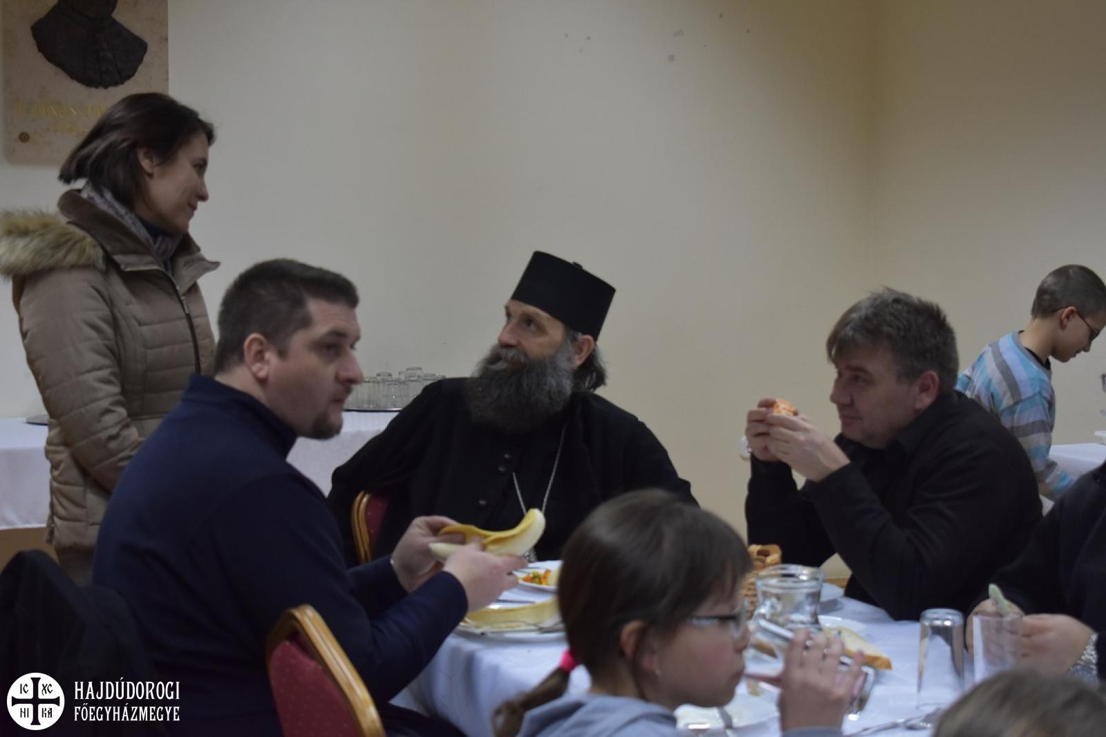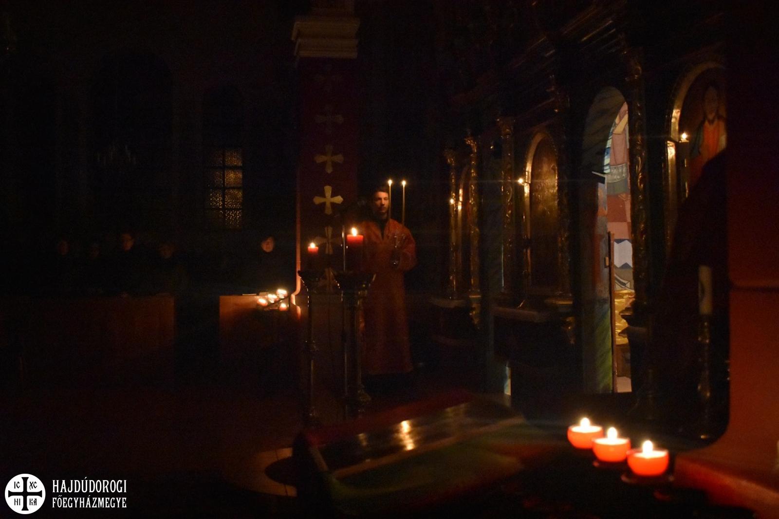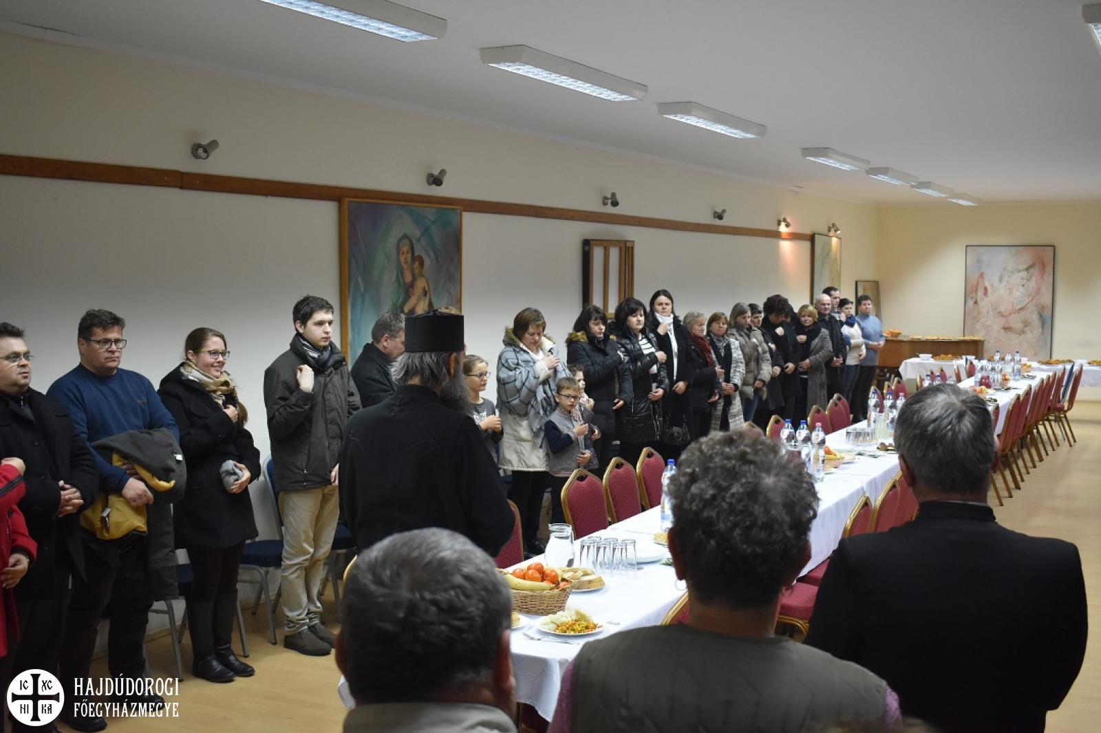A Nagyböjt egyik kiemelkedő eseménye volt a nyíracsádi egyházközségben, hogy pénteken, február 23-án Kocsis Fülöp metropolita végezte az Előreszentelt Áldozatok Liturgiáját. A templomunkban mintegy kétszázötvenen énekelték a böjt elgondolkoztató imádságait. Az éppen nálunk vendégeskedő kispapok segítették a kántori feladatok elvégzését. A diakónusi szolgálatot Tóth Lóránt látta el, aki nemrégen részesült az egyházi rend alsó fokozatában.
