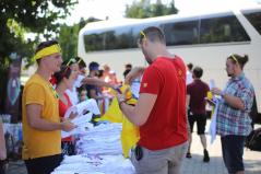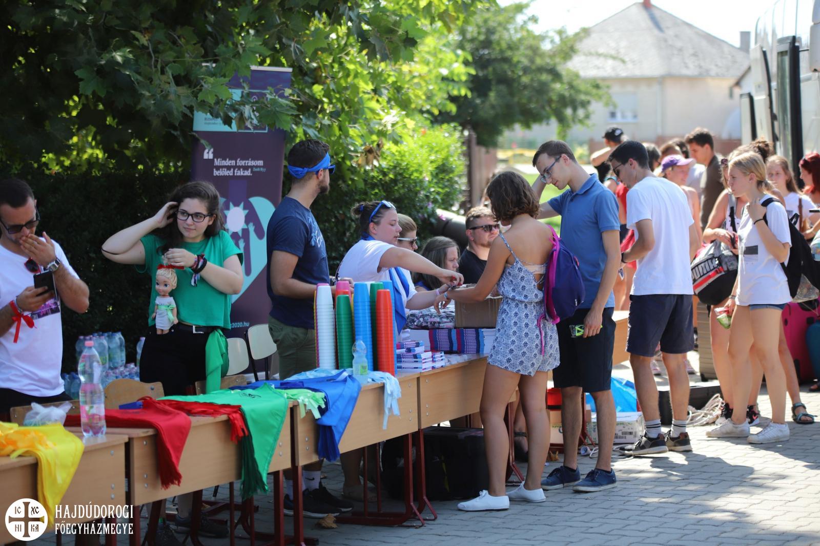 A viszontlátások óráit élték át hétfőn délután a zarándokok, hiszen a legtöbben már rutinos résztvevőknek számítanak. Aki viszont nem, az izgatottan vette kézhez első „zaris” csomagját, amibe ima-és énekeskönyv, választott csapatukat jelölő színes kendő, pohár, karkötő, póló, és egy napszemüveg is került.