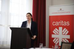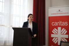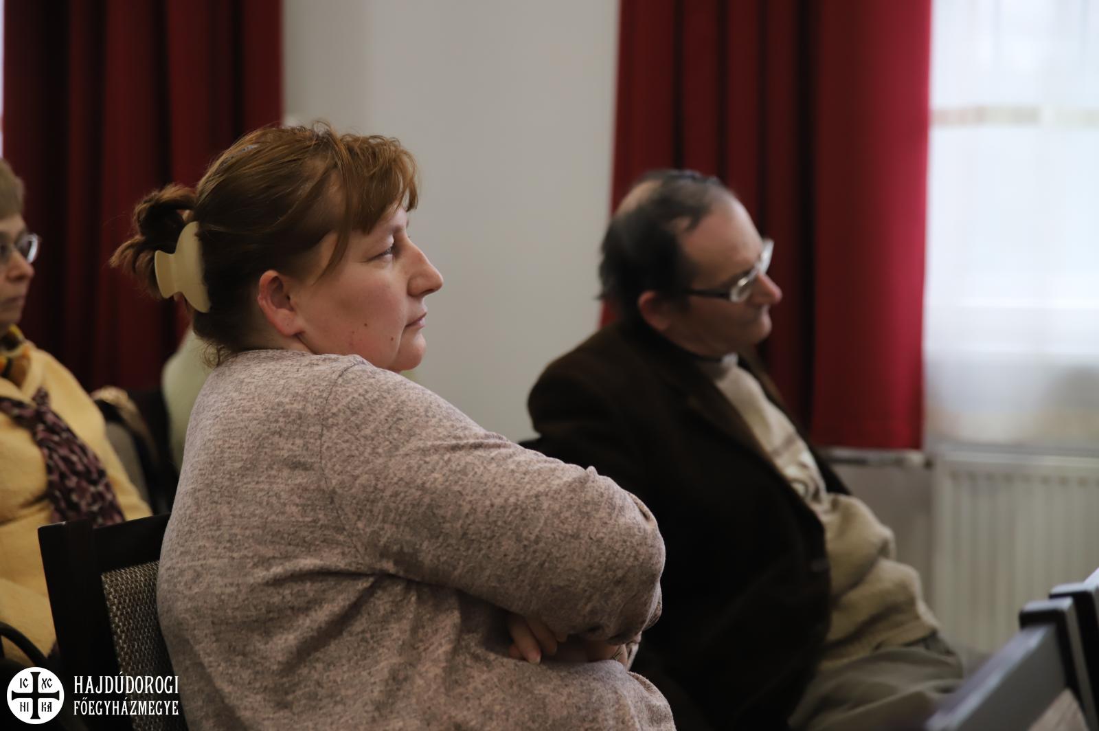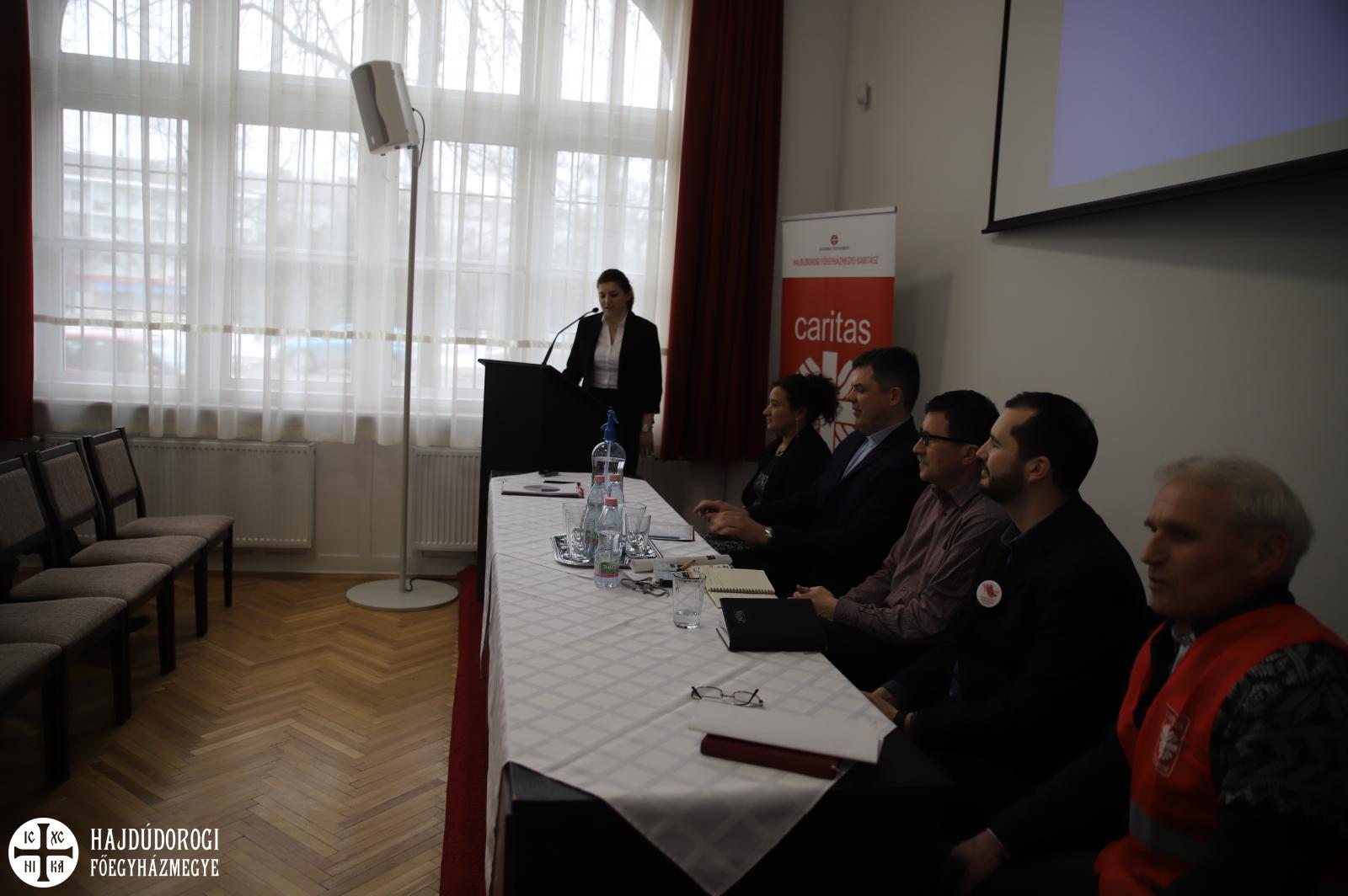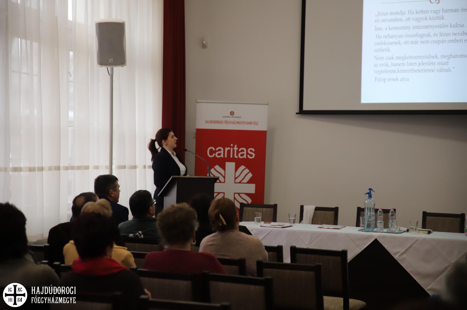 Majd Kissné Suta Mariann, a Szent Lukács Görögkatolikus Szeretetszolgálat Karitatív irodavezetője vette át a szót, aki a szeretetszolgálat és a karitatív iroda tevékenységéről beszélt. Felidézte, hogy a szolgálatot Kocsis Fülöp érsek-metropolita atya alapította 2010. december 6-án azzal a céllal, hogy a Hajdúdorogi Egyházmegye Szociális és karitatív életének intézményes keretet adjon „Jézus mondja: ha ketten vagy hárman összejönnek az én nevemben, ott vagyok köztük” – idézte fel az irodavezetőnk azt az elvet, amit érsek atya szem előtt tartott a megalakuláskor. A Szent Lukács tevékenységi köre igen szerteágazó. Induláskor az idősellátással foglalkoztak. Azóta is naponta mintegy 700 idősről gondoskodnak házi segítségnyújtás keretében, bentlakásos intézményből pedig négy működik. Szakolyon tudják fogadni a 18 éven felüli értelmi fogyatékosokat, szintén intézményi keretek között. A szeretetszolgálatnak három nagy gyermekvédelmi egysége van, melynek részeként mintegy 300 gyermeket lakásotthonokban látnak el, nevelőszülői hálózatban 500 gyermeket és családok átmeneti otthonában is tudnak menedéket adni.