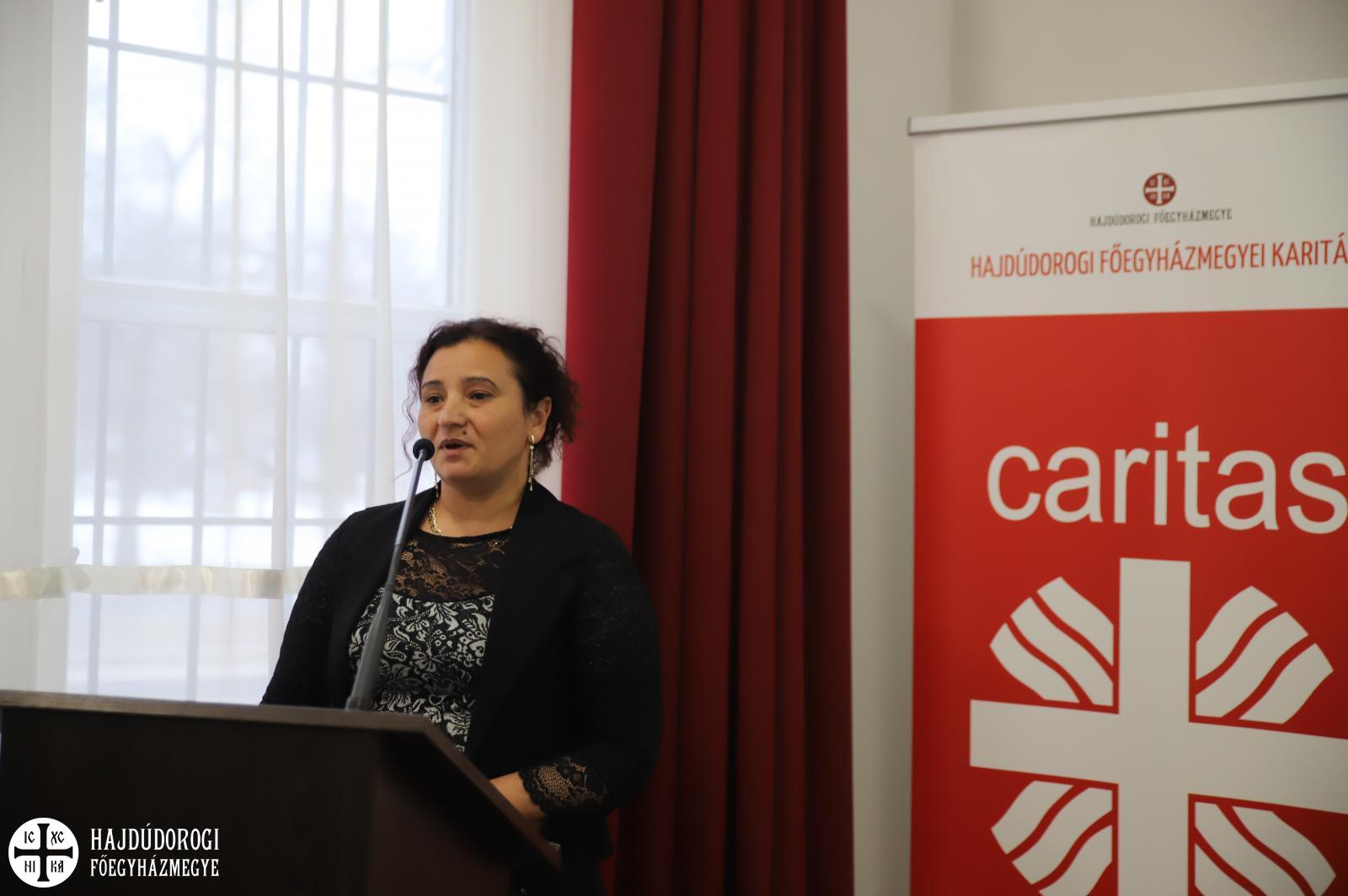 Oláhné Balogh Tímea szólt arról az együttműködésről is, ami a Roma Láng Egyesület és a Hajdúdorogi Főegyházmegyei Karitász között jött létre a szemléletformálás és a társadalmi érzékenyítés jegyében. Pályázatukban Álmosdon, Hajdúdorogon és Bagamérban fognak közösség építőmunkát kezdeni. Egyházunk és a szervezet tevékenysége az elesettek terén azonos ezért adta magát az összefogás, de az egyesület vezetője kiemelte, hogy ez igen ritka. Az előítéletek miatt ugyanis erre kevesen vállalkoznak… Ezen a negatív hozzáálláson ők most klubfoglalkozásaik révén kezdenének el változtatni, aminek lényege, hogy ezek során a romákat a magyarok felé fordítsanak, épeket a fogyatékosok felé. A jó gyakorlatokat szeretnék az egyház más szervezeteinek is átadni, mert ha jól csinálják, akkor sok tapasztaltuk lesz és ez másoknak is hasznos lehet.