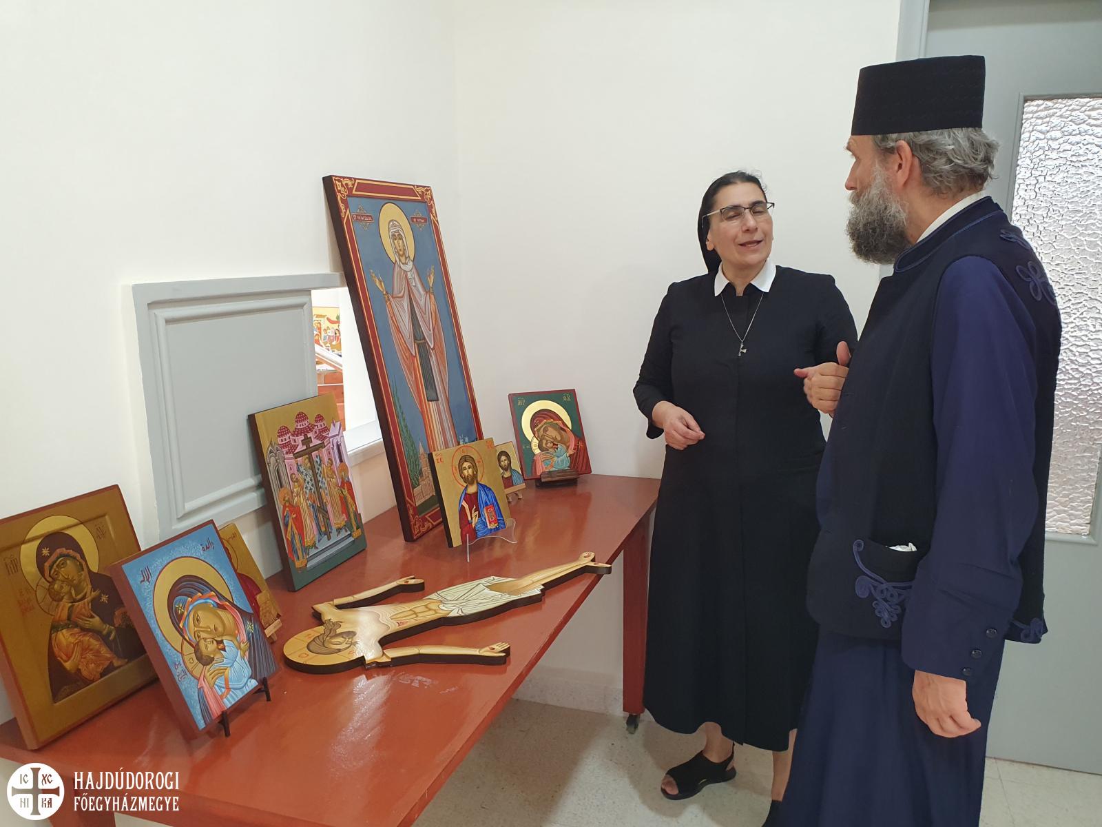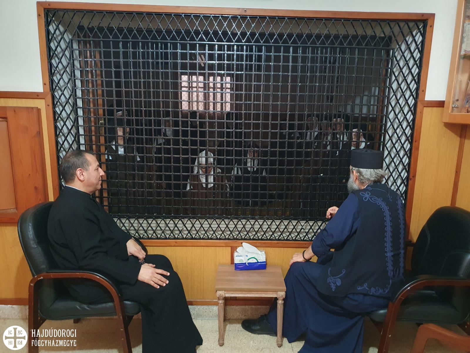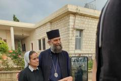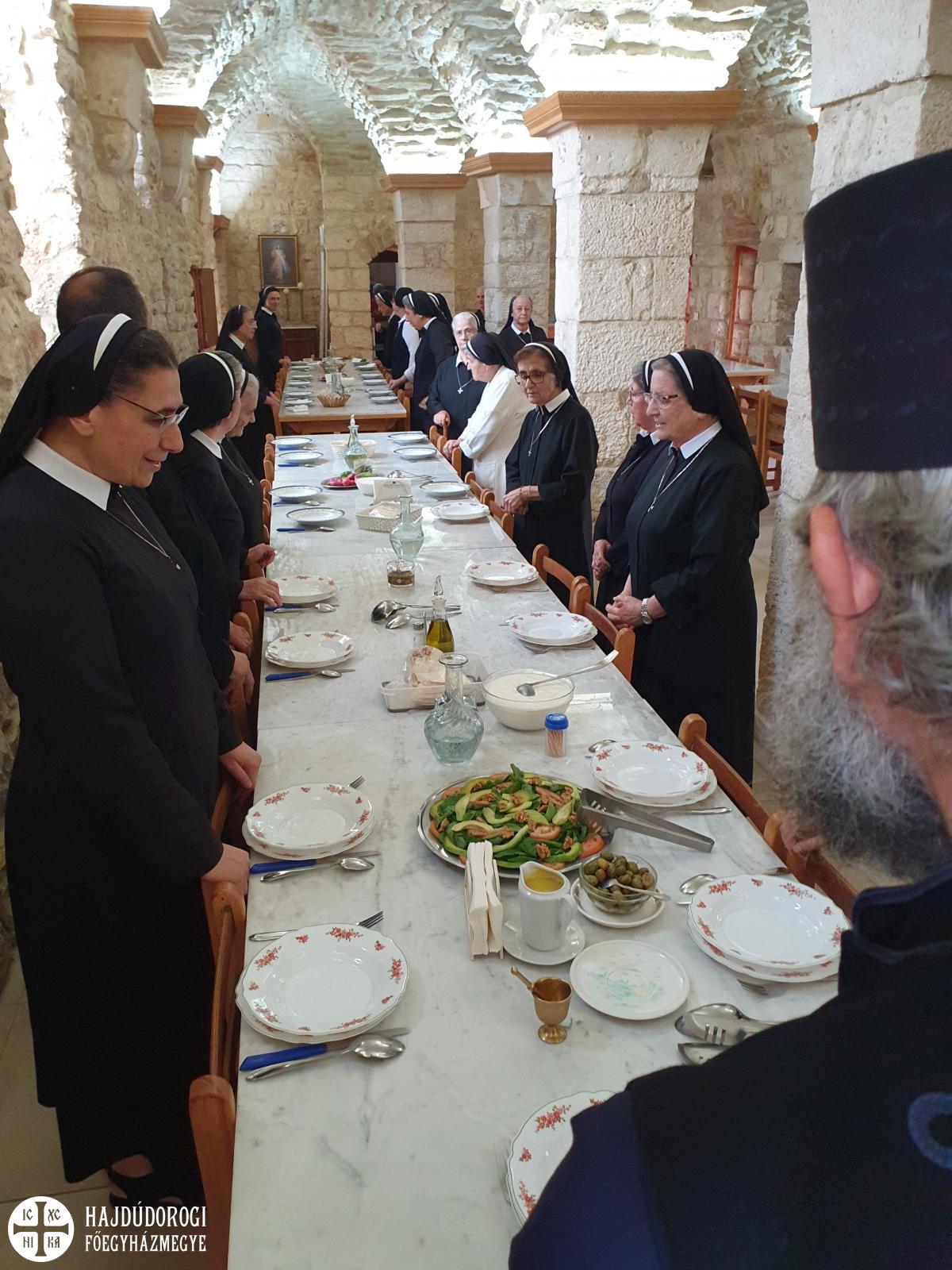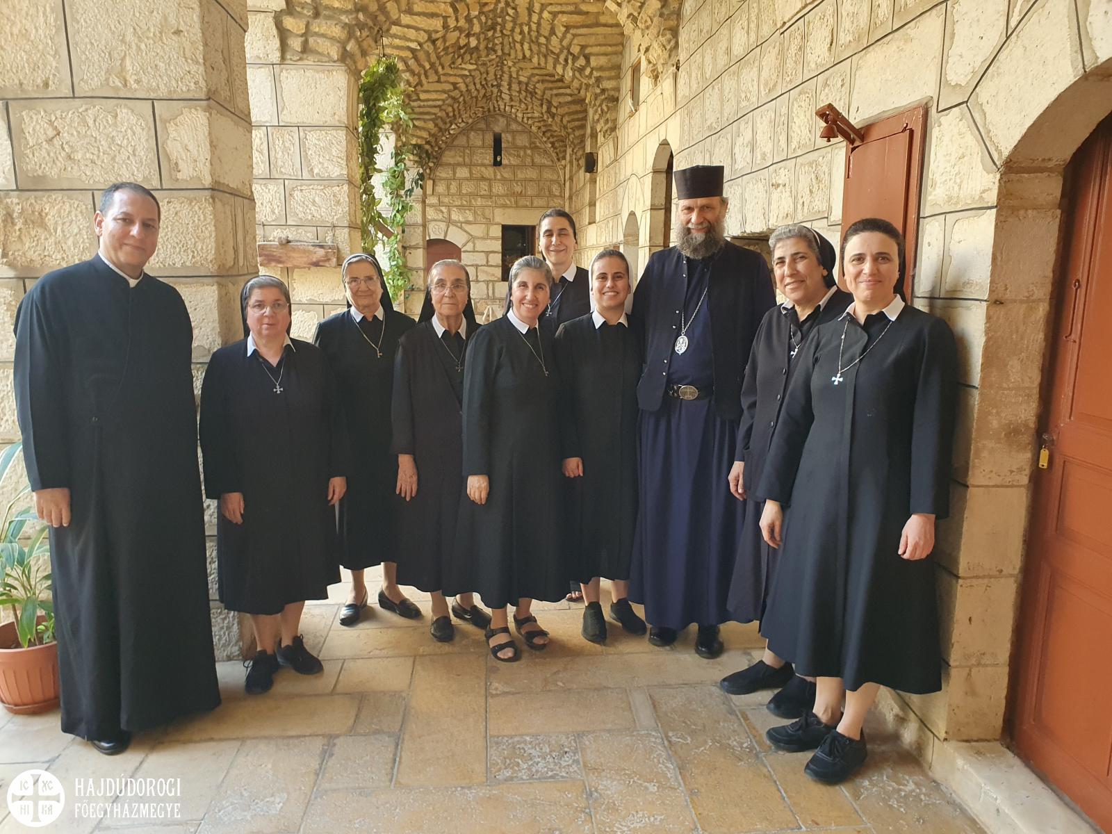 Vendéglátónk és sofőrünk, Naim atya közölte a nővérrel, hogy Fülöp atya, a magyar görögkatolikus metropolita jött látogatóba. Hamarosan egy kulcsot forgatott ki a nővér, mely a szomszédos szoba ajtaját nyitotta. Ez volt a látogatószoba, ahol ikonok, székek, a falon pedig egy duplafalú rács volt, melynek túloldala egy fa tolóajtóval is el volt zárva. Ez volt a nővérek ablaka a külvilágra. Hamarosan halk neszezés, pusmogás hallatszott a túloldalról, és egyszer csak elhúzódott a tolóajtó. Húsz, tetőtől talpig fedett nővér mosolygott ránk a dupla rácsfal mögül. Két oldalt ültek, elöl az idősebbek, hátul a fiatalabbak, középen, térdelve az első fogadalmasok, legelöl a novícia.