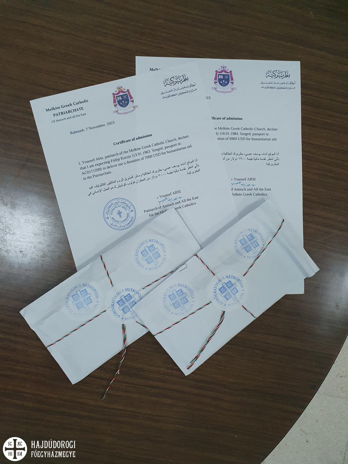 Fülöp metropolita szerda este érkezett Bejrútba, ahol a hazai, hideg novemberi időjárással ellentétben huszonkét fokos tavaszi meleg, és jó brátja, a damaszkuszi melkita parókus, Naim atya fogadta. A melkita patriarkátus bejrúti épületében töltött éjszaka után csütörtökön átadta a Görögkatolikus Metropólia felhívására összegyűlt adományt, melyet rászoruló családok, keresztény menekültek, és a karitász munkájának megsegítésére, valamint az Al Dmeine-i parókia munkásságának segítésére fognak fordítani.