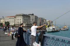 Az Hagia Sophia után újabb diplomáciai telefonhívások következtek a Szíriába való beutazásunk ügyében, majd séta az Aranyszarv-öbölben, és a Galata-hídon. Ennek a hídnak érdekessége, hogy míg a felső szinten folyik a forgalom, a vízhez közel éttermek sorakoznak. Mind rendkívül előkelő. Ebben az időpontban nem is volt nagy forgalom egyiküknél sem. Bizonyára ezért is voltak már-már tolakodóan udvariasak és a ki-ki a saját éttermébe csalogatott minket. Vesztünkre az egyiknek már nem tudtunk ellenállni, s a korgó gyomrunk, a járkálásban egyre súlyosabb lábaink is rásegítettek erre az elgyöngülésre. Mindketten kissé rossz lelkiismerettel ültünk az egyébként gyönyörű helyen lévő éttermi asztalhoz. Körülöttünk, sőt, fölöttünk pecázó emberek, a kék vízen hajók óriási forgalma, a távolban az Hagia Sofia, másik oldalon pedig a Boszporusz híd. Az előkelő helyért meg a lángoló cserépedényben kihozott lecsóért borsos árat fizettünk. Még mindenfélével akartak kedveskedni nekünk, de mi már inkább menekültünk ebből a pénztárcánkra leső udvariasságból. A számlán is rajta volt a borravaló, s még azon felül is erősködtek, hogy az még nekik járna. No, ekkor már határozottabbra vettük a figurát, és otthagytuk őket. Viharosra sikerült távozásunk után azonban érdekes mozzanatok következtek. A következő étterem egyik dolgozója már nem pénzforrást látott bennünk, hanem Fülöp atyától áldást kért. Mikor ezt könnyedén megkapta, egyszerre több fiatalember is odaszaladt, hogy ők is kaphassanak áldást. Megható volt, hiszen több mint valószínű, hogy muzulmánok voltak, ám egyházi személy láttán tisztelték benne az Isten emberét.