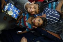 A reptér felé tartó villamosan újabb lélekmelengető jelenet játszódott le. Négy, - vélhetően testvér – kisfiú szállt a villamosra. Koszosak voltak, taknyosak, mezítlábasak. Csomag zsebkendőket árultak az utasoknak aprópénzért. A legkisebb, egy ötéves forma, még ártatlan kis kócos Fülöp atyát meglátva odaszaladt hozzá és átölelte. Nem tukmálta rá a portékáját, nem kunyerált tőle, csak ölelgette. Metropolitánk kedves szavakkal beszélt hozzá, simogatta göndör buksiját, a kisfiú pedig csak mosolyogva nézte őt. S ha ez még nem lett volna elég, elkezdte csókolgatni Fülöp atya panágiáját, míg a következő megállónál le nem szálltak. Egy koldulásra kényszerített, sanyarú sorsú kis gyerkőc mosolygós szeméből és gesztusából áradt valami olyan ártatlan kedvesség, melyet nehéz szavakba önteni, és még ma is megmelengeti szívünket, ha rágondolunk. A villamoson többen szóba elegyedtek Fülöp atyával, mind kedvesen és jókedvűen.