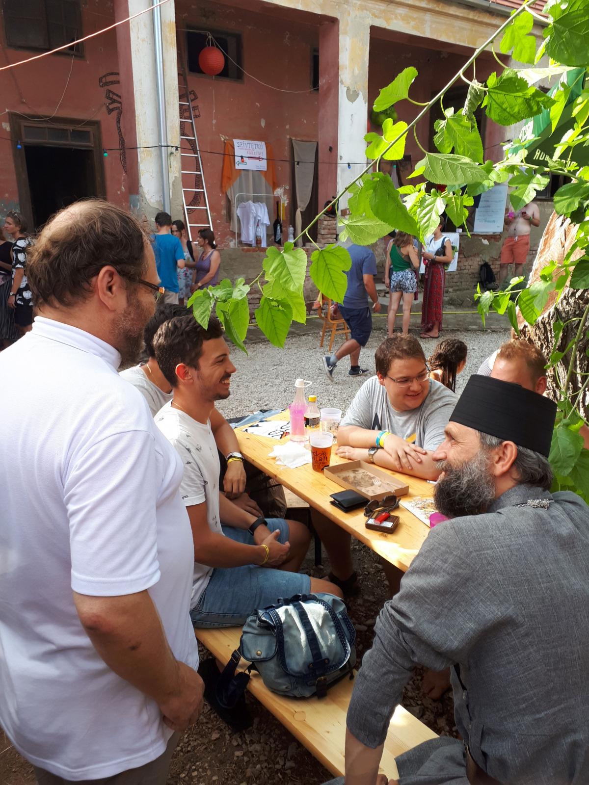 A református templom oldalában felállított keresztény sátor önkéntesei és az oda betérők is egy nyitott beszélgetés keretében kérdéseket intézhettek az Érsekhez, aki szívesen válaszolt nekik. A fiatalok érdeklődtek a görögkatolikus egyház jelenlegi helyzete felől, valamint személyes élethivatása, papi és szerzetesi hivatása megválasztásáról. Így tudhatták meg, hogy miként lett püspök egy egyszerű szerzetestestvéri életre vágyó és azt megélő papból, miként adta át Isten kezébe életének fontos döntéseit. Arra a kérdésre, hogy „mit keres egy érsek a fesztiválon” azt válaszolta, számára mindig is tetszettek azok a lehetőségek, amelyek során fiatalokkal lehet beszélgetni. Korábban is hallott a KözösPont fesztiválmisszióról, amely a Sziget fesztiválon jelent meg először. Első látogatása során, két éve a Strand fesztiválon elismerését szerette volna kifejezni a missziós csapat felé, mert a KözösPontos önkéntesek hivatása is ugyanazon tőről fakad, mint az Ő papi hivatása. Ez pedig az Istenben való tenni akarás.