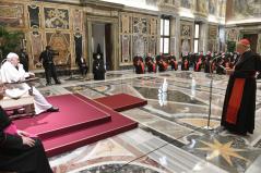 Igen, külön fogadta a plenáris ülés és a hozzá kapcsolódó liturgikus konferencia tagjait. Ez is jól jelzi az esemény súlyát. Igen nagy megtiszteltetés, ha a Szentatya bekapcsolódik valamelyikbe. A Kelemen-teremben volt a vele való találkozás, ahol a kongregáció tagjai és az eseményre meghívott vendégek előtt mondta el gondolatait. Leginkább a békéről, ezért való felelősségünkről és elköteleződésünkről beszélt, hiszen a kongregáció tagjainak többsége sokat szenvedett országokból érkezett.