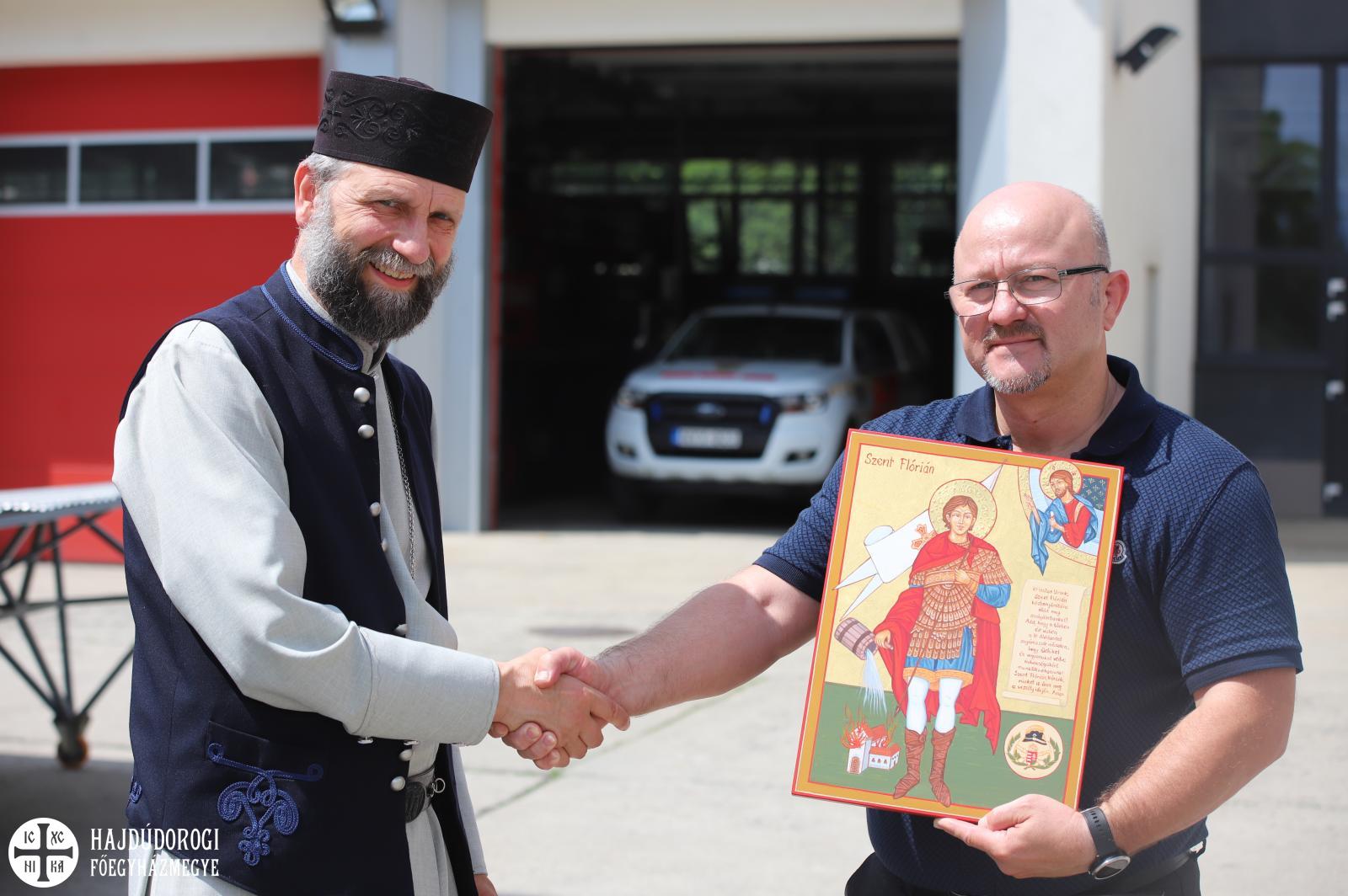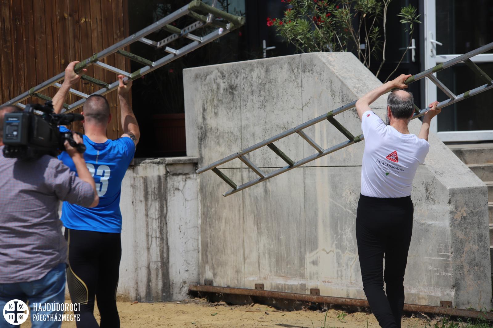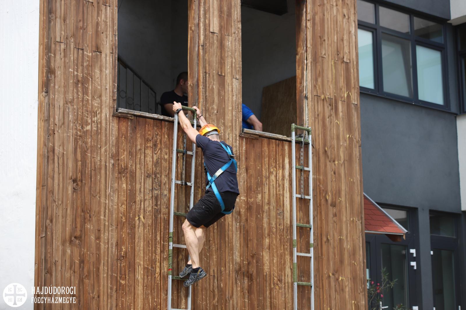 Június 6-án már a Hajdúdorogi Főegyházmegye érsek-metropolitája készült fel a kihívásra. Fülöp atya rendszeresen sportol, korábban a sziklamászást is gyakorolta, így amikor Szent Flórián napján találkozott a Hajdú-Bihar Megyei Katasztrófavédelmi Igazgatóság vezetőjével, lehetőséget kért a horoglétra kipróbálására.