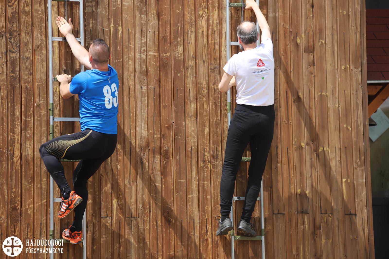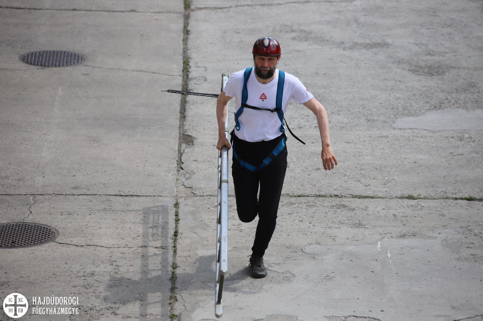 Érsek atya két percen belüli idővel jutott fel a harmadik emeletre, amivel kivívta a tűzoltó bajnokságra készülő Kupás Gergő elismerését.
