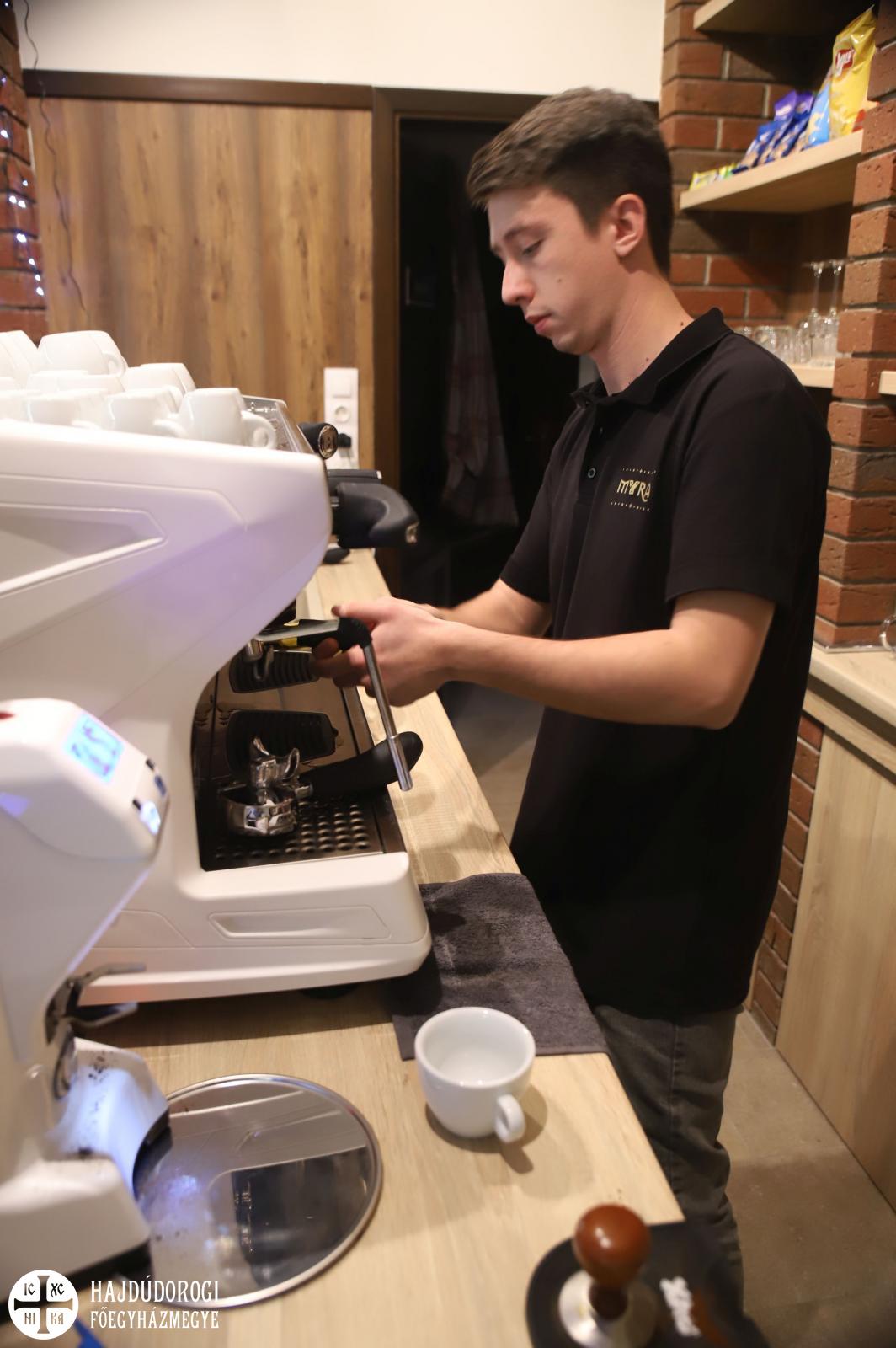 Tanulásra, netezésre, közös játékra, lelki alkalmak megtartására egyaránt alkalmas a hely, ahol nem mellesleg szintén Myra néven egyedi kávét lehet kortyolgatni. Hosszas előkészület után készült el egy igazán karakteres, közepes pörkölésű, brazil arabica, ami a kisvárdai Warda Coffee Roaster üzeméből érkezik. Professzionális daráló és kávéfőző is rendelkezésre áll ahhoz, hogy a szemekből a legfinomabb espressot, cappuccinot, melanget ihassuk.