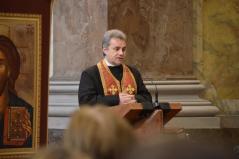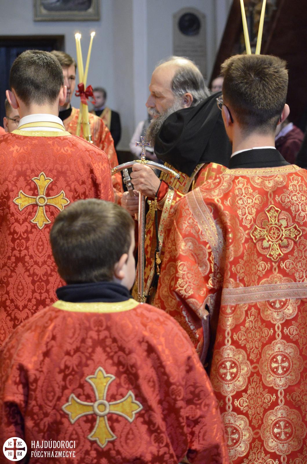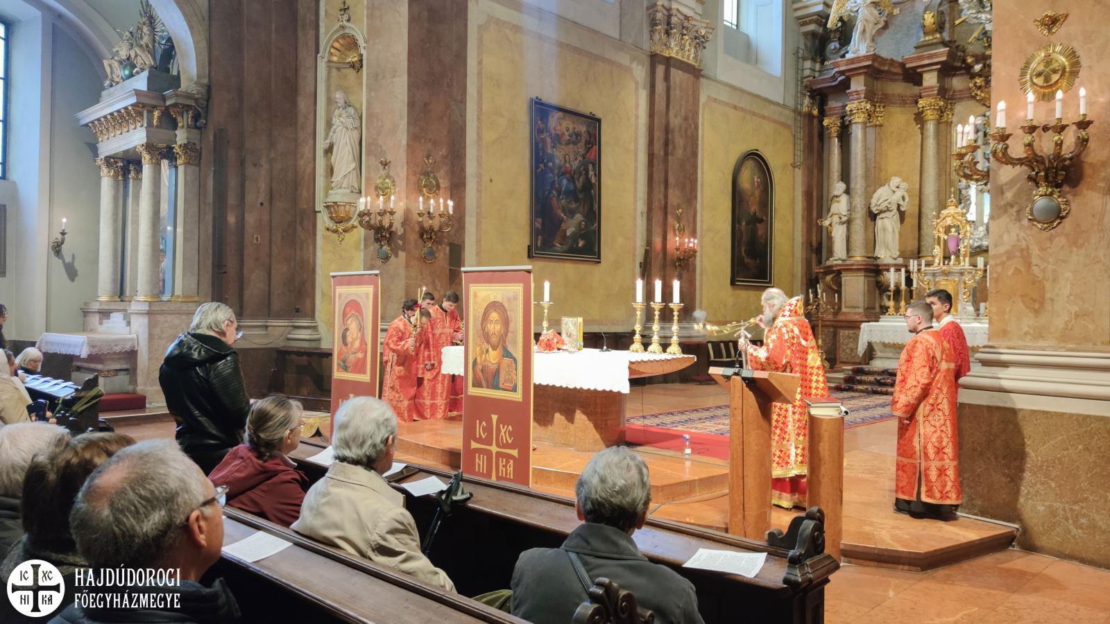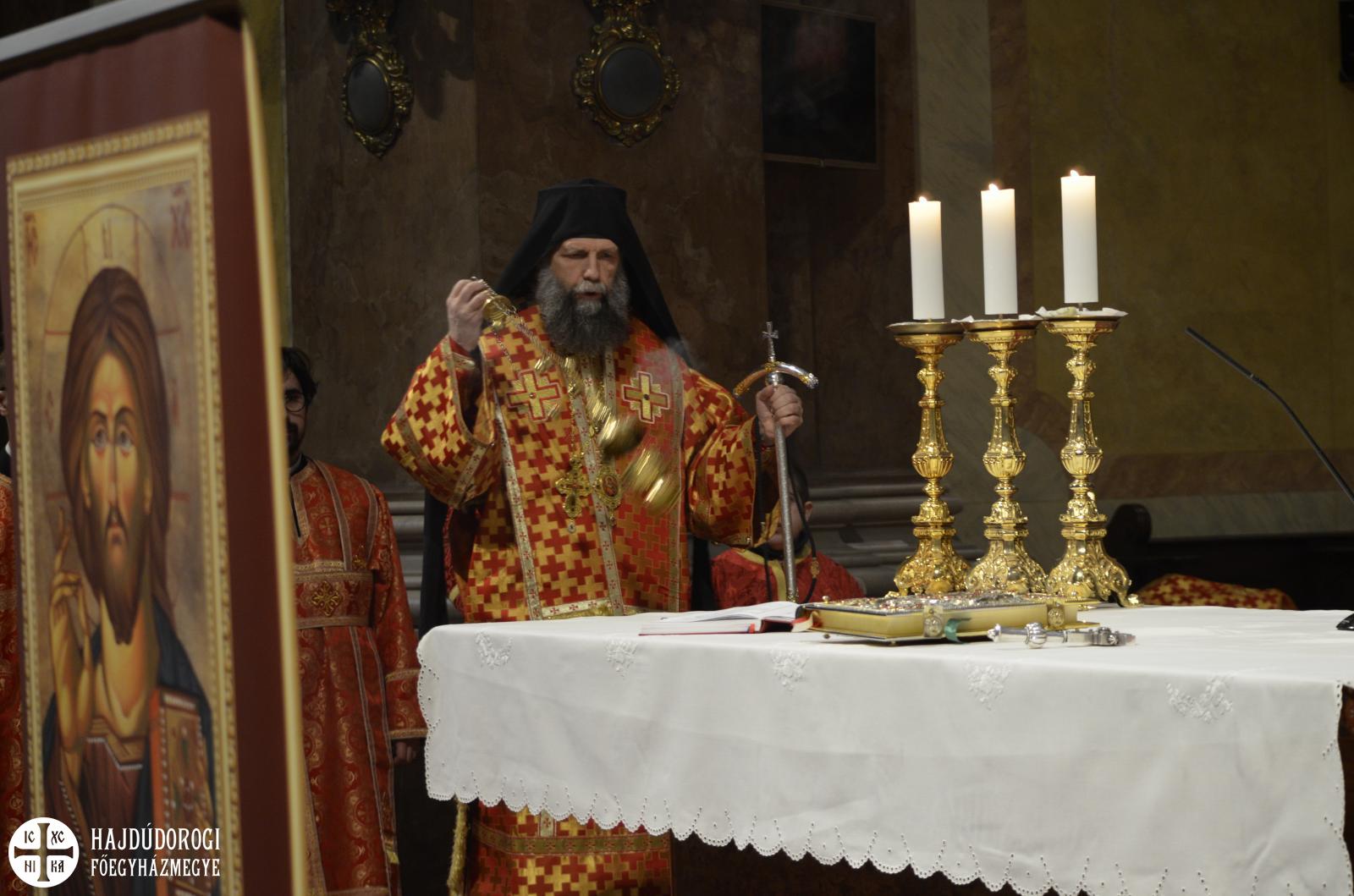 Az elmélkedéseket követően kezdődött a szertartás, Fülöp érsek-metropolita atya vezetésével. A főpásztor prédikációja elején megkérdezte mindenkitől, hogy hány Isten van. Van-e következménye az életünkben annak, hogy egy Isten van? Ha egy Isten van, akitől minden származik, mi is Tőle vagyunk, Ő az életünk forrása. Érsek atya kiemelte, hogy az életünkben lévő értékek, mint a család, barátok, tudás nem lehetnek fontosabbak Istennél, de szerencsére nem kell ezeket szembe állítani Istennel, mert minden más érték Őbenne elfér, az Istenben minden jelen van.