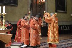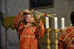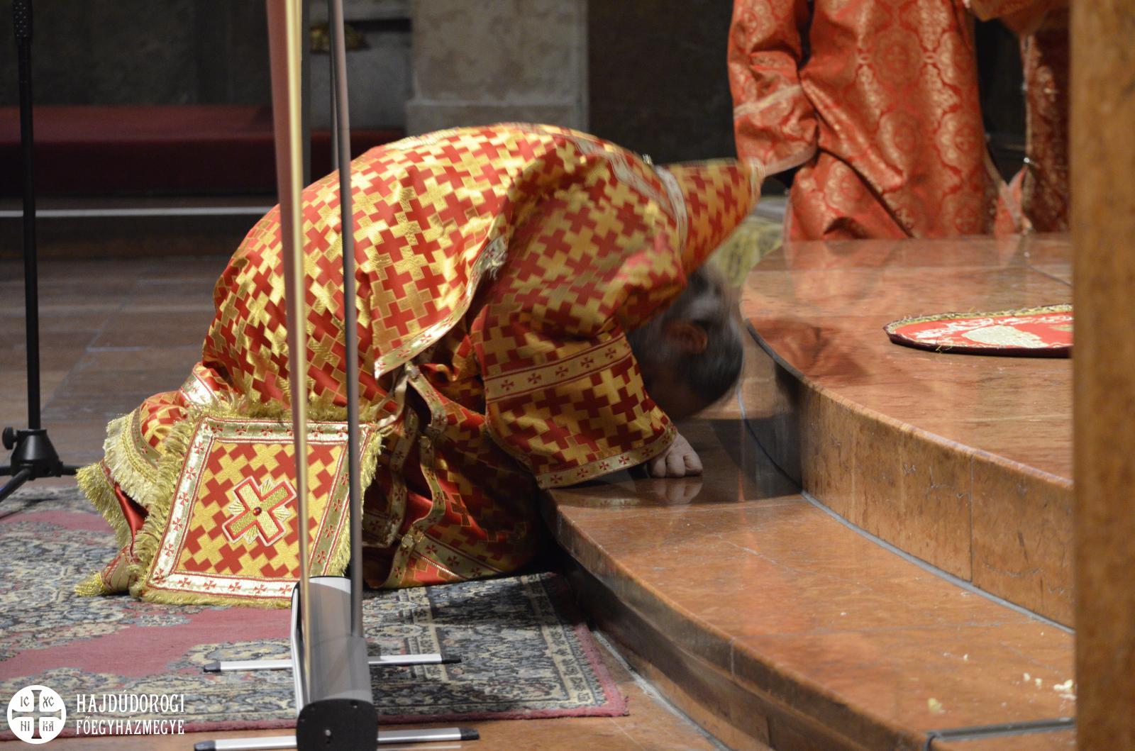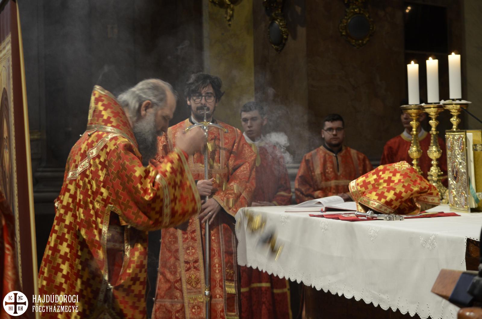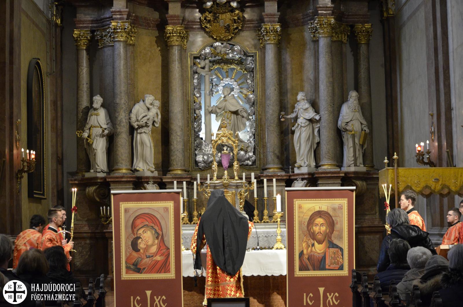 Az elmélkedéseket követően kezdődött a szertartás, Fülöp érsek-metropolita atya vezetésével. A főpásztor prédikációja elején megkérdezte mindenkitől, hogy hány Isten van. Van-e következménye az életünkben annak, hogy egy Isten van? Ha egy Isten van, akitől minden származik, mi is Tőle vagyunk, Ő az életünk forrása. Érsek atya kiemelte, hogy az életünkben lévő értékek, mint a család, barátok, tudás nem lehetnek fontosabbak Istennél, de szerencsére nem kell ezeket szembe állítani Istennel, mert minden más érték Őbenne elfér, az Istenben minden jelen van.
