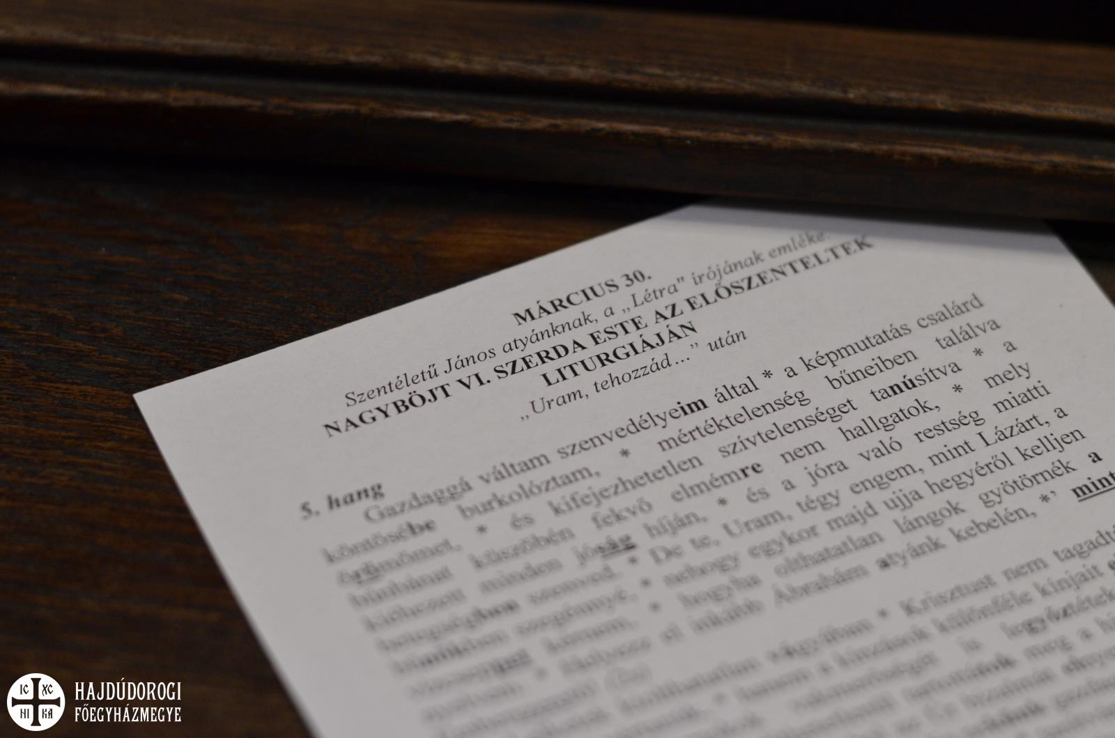 Érsek atya kihangsúlyozta, hogy az Egyház segít a Nagyböjtben nem elfelejteni, hogy Istennek köszönhetjük mindenünket; az idő a mi kezünkben van. A Nagyböjt lehetőséget ad a felkészülésre. Ha élünk ezekkel a lehetőségekkel, ha elmegyünk a nagyheti szertartásokra, ha felismerjük, hogy Isten az Egyetlen, akkor könnyebb a böjt, könnyebb a hosszú ima, könnyebb a parancsok megtartása, mert ezek mind Krisztushoz vonzanak közelebb minket. Szüksége van a világnak olyan emberek példájára, akiknek egyedül Krisztus fontos, mert Ő is mindenről lemondott értünk, mi voltunk Istennek a legfontosabbak.