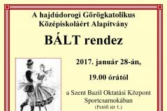2017. január 28-án rendezik meg Hajdúdorogon a Görögkatolikus Középiskoláért Alapítvány bálját. A sztárvendég: Nagy Feró énekes lesz.