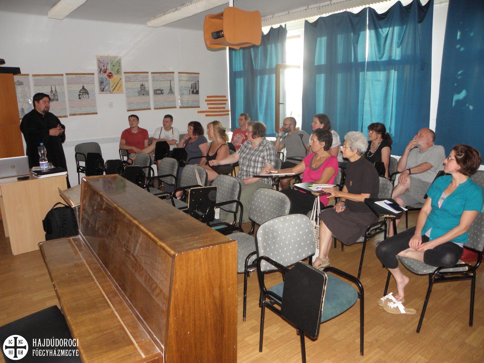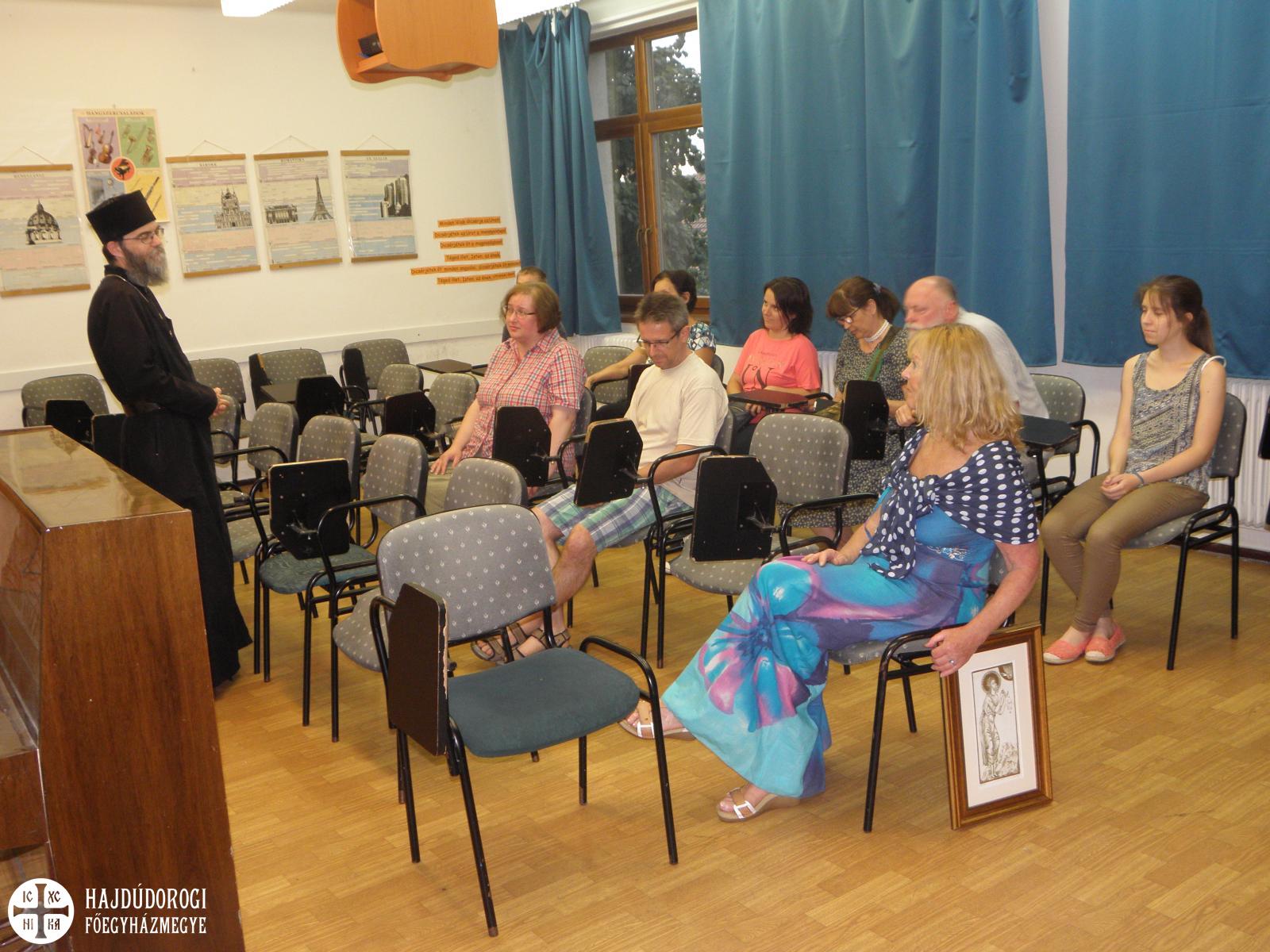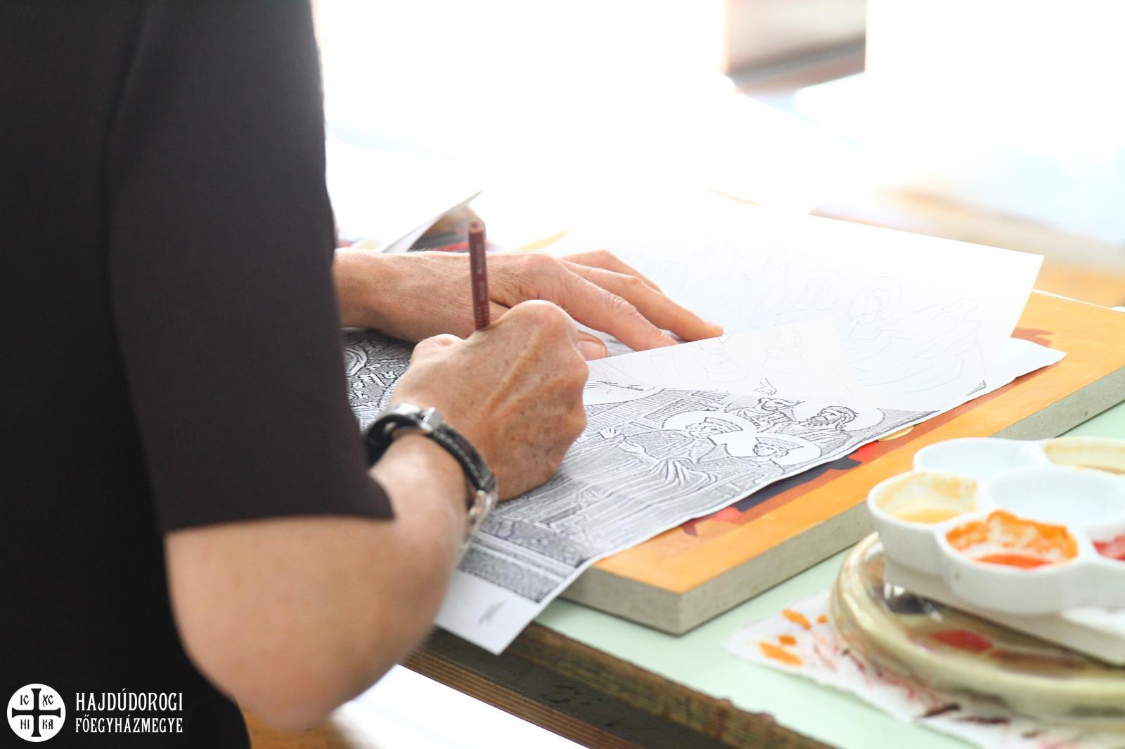 A hét folyamán a szakmai ismeretek elsajátítása mellett nagy hangsúlyt kapott a lelki elmélyülés is. Az ikonfestést segítő gazdag lelki program keretében Kocsis Fülöp metropolita atya vecsernyét imádkozott a tábor részvevőivel, illetve az ikonok spirituális hátteréről tartott előadást. Orosz Atanáz püspök atya az ikonokkal kapcsolatos 7-9. századi zsinati határozatok alapján mutatta be az ikonábrázolás teológiai hátterének kialakulását. Nyirán János fődiakónus vetített előadásán a Húsvéti (Krisztus alvilágba való leszállását bemutató) ikon különböző ábrázolásairól adott érdekes áttekintést. A tábor utolsó napján az elkészült ikonok megszentelése a tíz órakor kezdődő liturgia keretén belül történt, majd a hívek megtekinthették a tábor résztvevőinek munkáját.