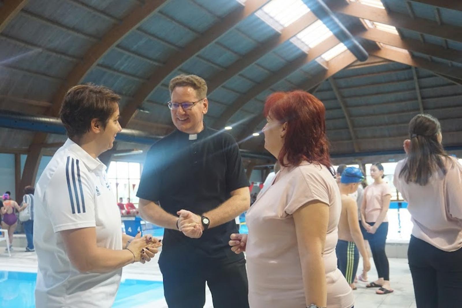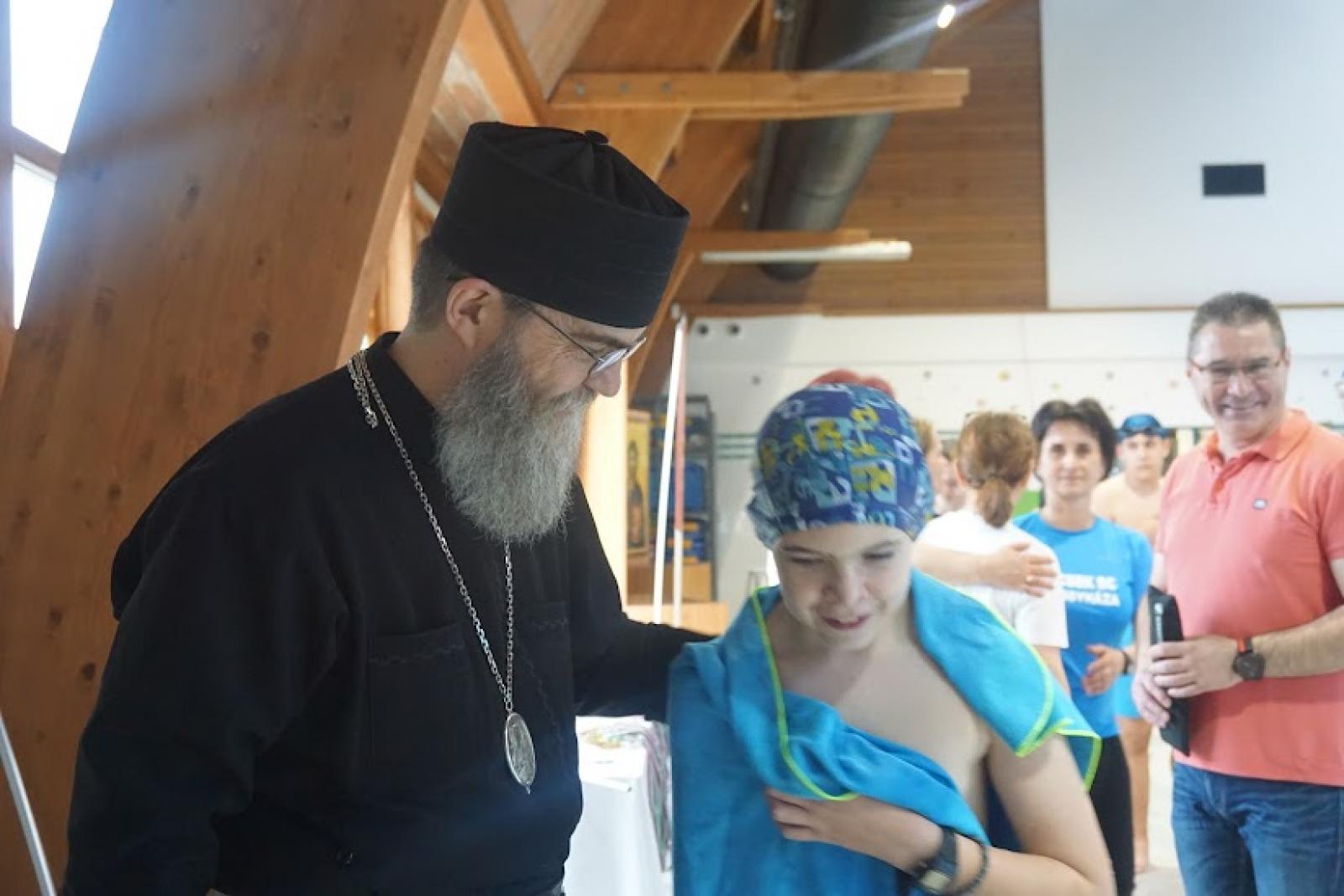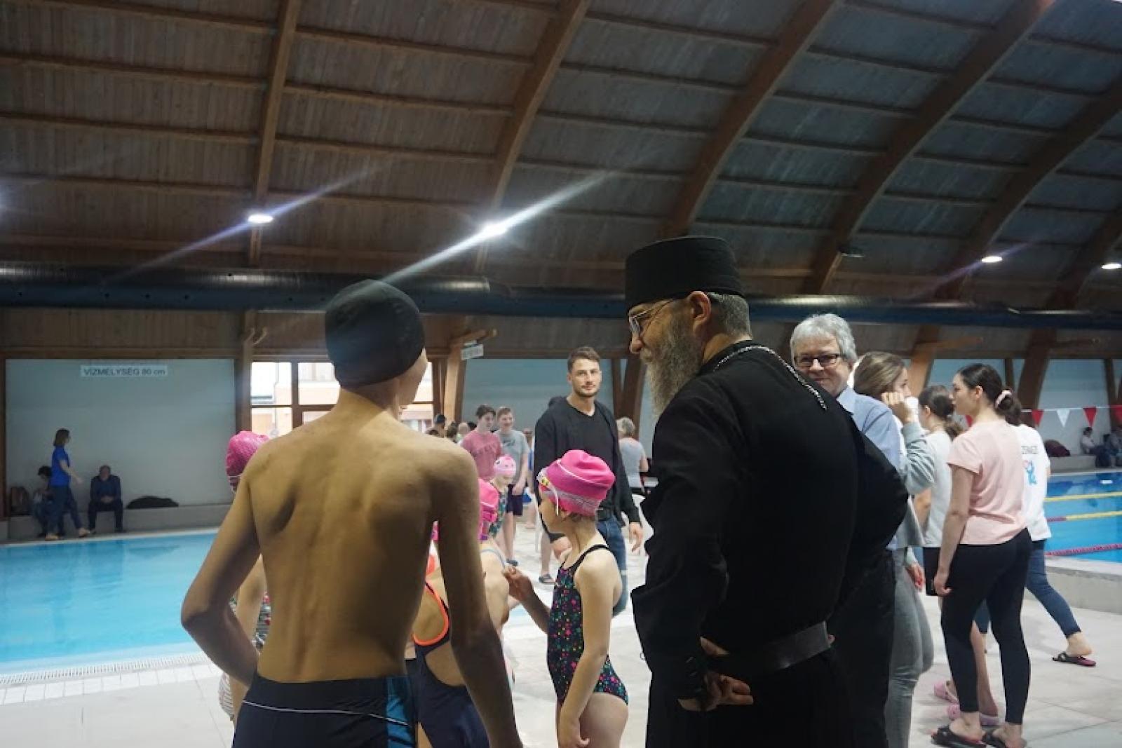 Dr. Orosz Atanáz miskolci megyéspüspök a hit, a remény és a szeretet jegyében nyitotta meg az úszóversenyt: