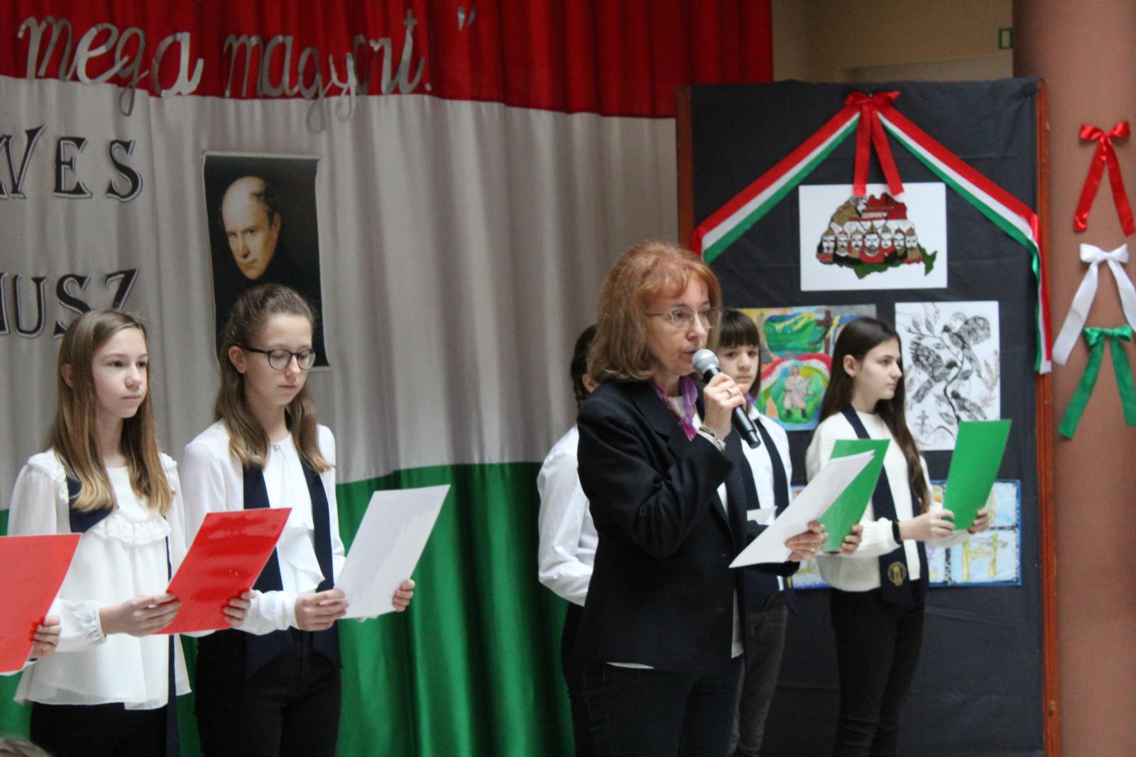 A megnyitót követően rövid bevezető után közösen szavaltuk el a magyarok Himnuszát. Rendezvényünket csaknem 100 iskola követte élőben a Facebook segítségével, de voltak, akik saját szervezésben, de hozzánk csatlakozva, velünk együtt ünnepeltek. Nagyon fontosnak tartjuk a gyermekeink nemzettudatának, magyarságtudatának erősítése szempontjából a közös versmondást, hiszen nagyszerű élmény volt a tudat, hogy velünk egy időben több mint 30 ezer diák és tanár velünk együtt tiszteleg a magyarok Himnuszának 200. évfordulója alkalmából. A közös versmondással kifejezhetjük nemzeti összetartozásunkat, megvallhatjuk igaz magyarságunkat.