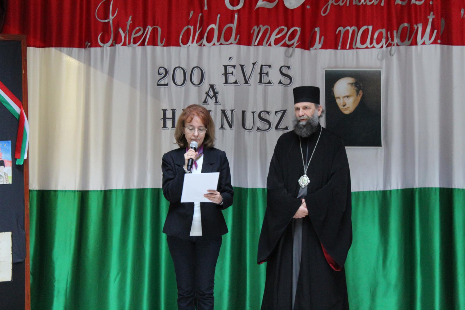 Vendégünk volt Kocsis Fülöp metropolita atya is, aki néhány gondolattal nyitotta meg rendezvényünket. Először köszönetét fejezte ki a pedagógusoknak, akiknek sikerült ilyen sok gyermeket és pedagógust fellelkesíteni a közös versmondásra, majd így folytatta: