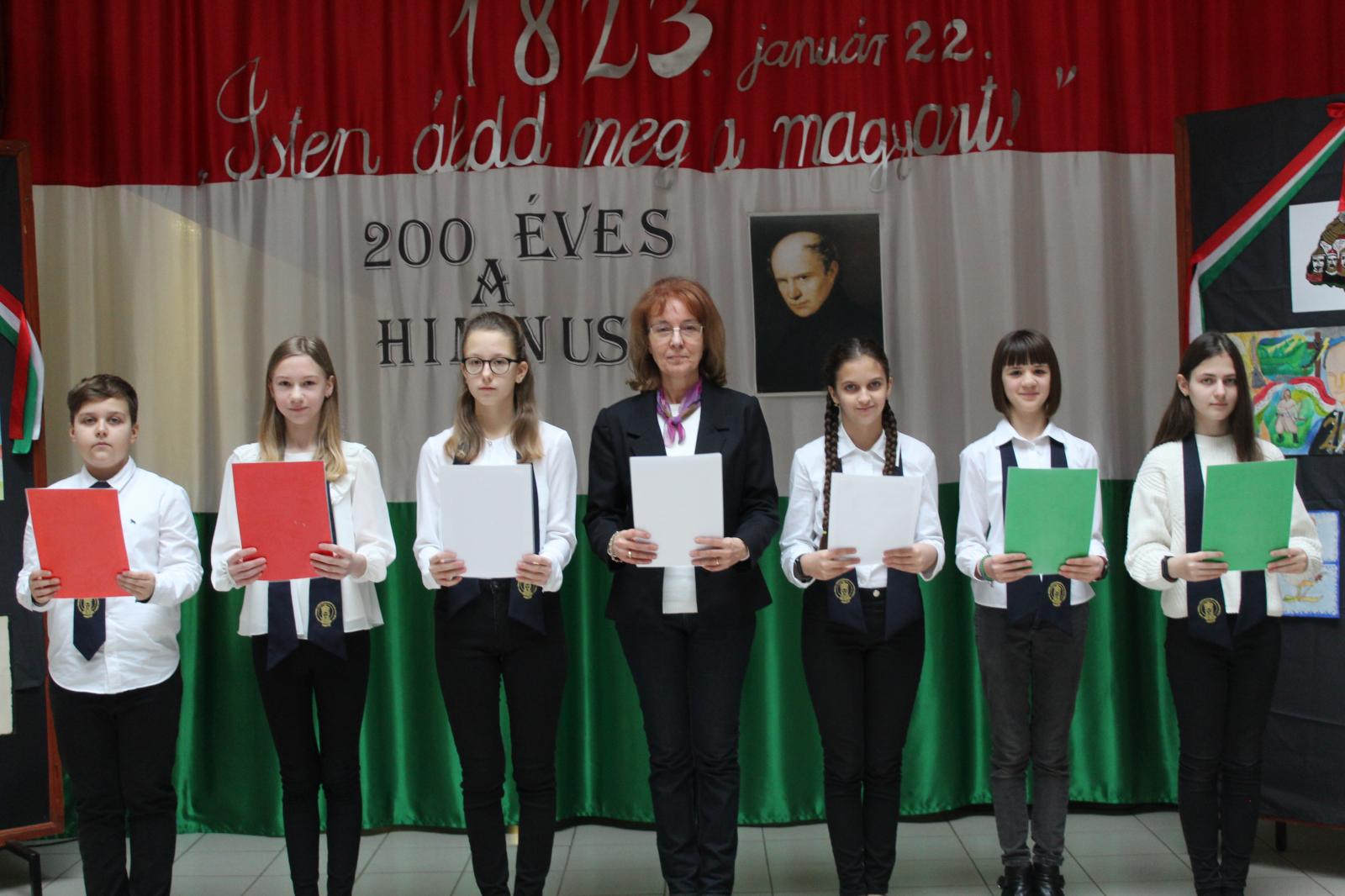 Tíz évvel ezelőtt a mi intézményünkből indult el a közös versmondáshagyománya, rá egy évre már egy egész nemzet szavalta a Himnuszt. A bicentenárium alkalmából ismét útjára indítottuk a „Szavaljuk együtt a Himnuszt!” felhívást, amihez nagy-nagy örömünkre több mint 100 iskolából, több mint 30 ezer diák és tanár csatlakozott szerte az országban, de még Erdélyből, Hargita megyéből is. Január 20-án délelőtt tartottuk ünnepi megemlékezésünket az iskola aulájában, melyet a világháló segítségével sokan követtek élőben is.