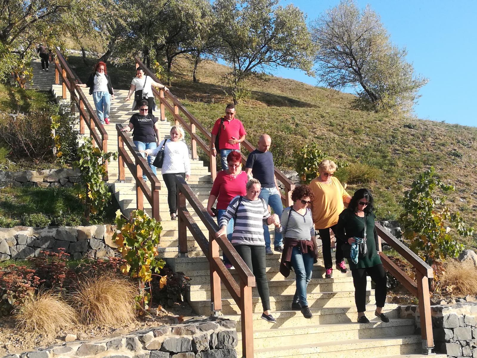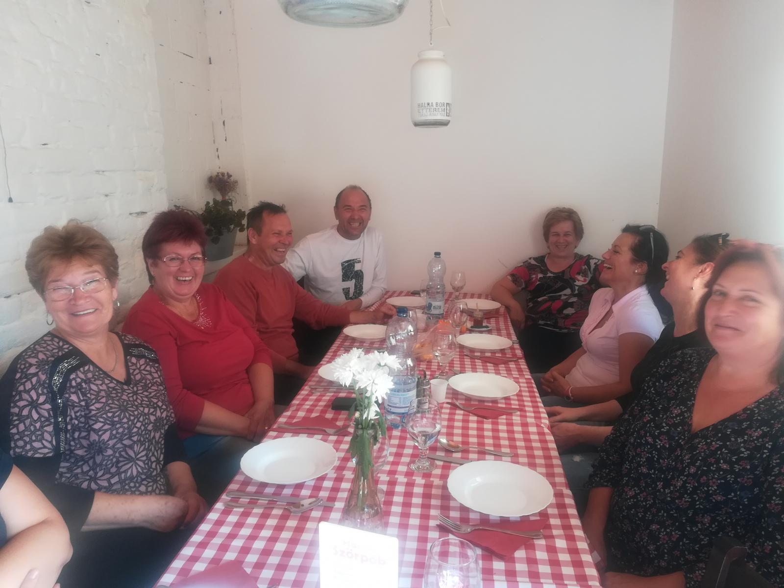Miután kigyönyörködtük magunkat és kicsit megpihentünk, a lefelé vezető út már könnyen ment. Egy kis séta után felfedeztünk egy hangulatos borospincét, ahol mindenki beszerezhette az otthonra szánt kóstolót és kedvére ízlelhette a különféle nedűket, mely megalapozta a kellemes hangulatot a hazafelé vezető útra. Élménydús, hangulatos napot töltöttünk együtt, kicsit kiszakadva a mindennapokból. Bár a munkahelyi témákat nem sikerült teljesen kizárni, de mindenkinek sikerült hosszabb-rövidebb időre kikapcsolódni és lazítani, jobban vagy más oldalról megismerni a kollégákat.