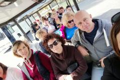 Jó hangulatban gyülekezett reggel a társaság, mely a buszút során csak fokozódott. Már melegen sütött a nap, mikor a településre érkeztünk, ahol már várt minket a hajó és jókedvű kapitánya. Egy órát hajókáztunk a vízen, csodáltuk a tájat, az ősz pompázatos színeit: az aranyat, a vöröset, a narancsot, néhol zöldet és barnát. A tiszta időnek hála a táj tükröződött a nyugodt vízfelszínen, csak itt-ott szelte ketté néhány vadkacsa csapat, ezzel csempészve egy kis életet a nyugodt tájba. A hangulatról a kapitányunk gondoskodott, aki a sok hölgy láttán kötelességének érezte, hogy szórakoztasson minket.