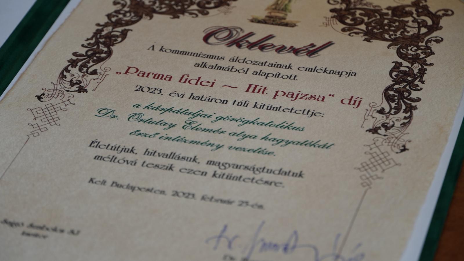Az anyaországi díjat 24-én, pénteken Pavlics István érdemesült esperes, kanonok atya kapta meg, a határon túliak díját Ortutay Elemér (1916-1997) kárpátaljai görögkatolikus pap hitének elismeréseként az ő szellemi hagyatékát őrző és továbbadó beregszászi Ortutay elemér Görögkatolikus Központnak ítélték.