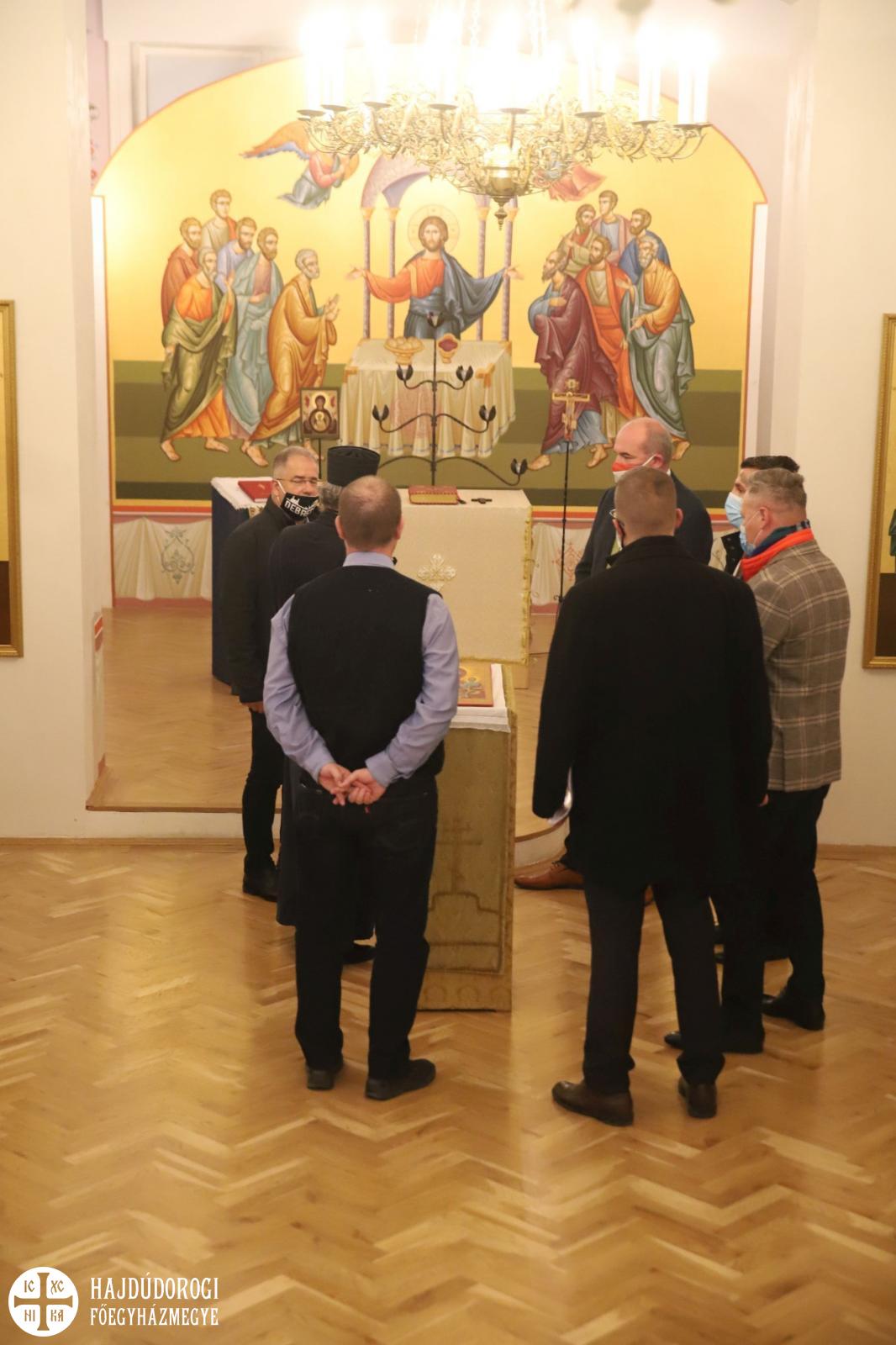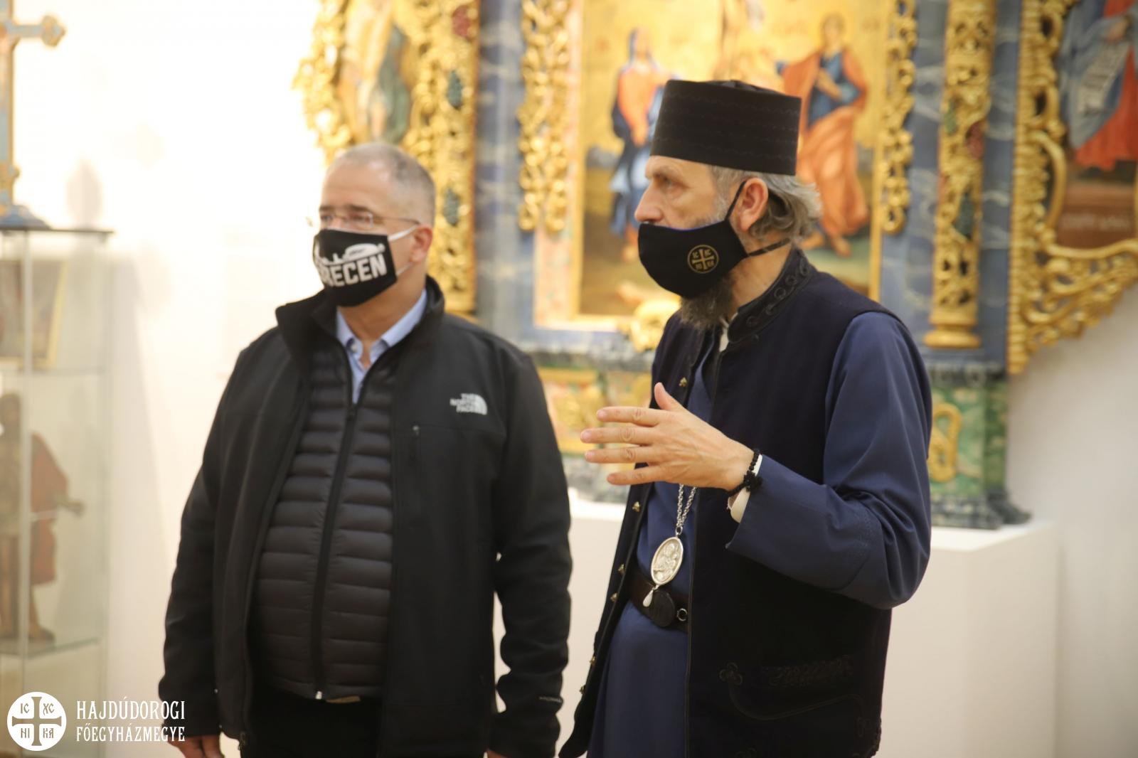 A vendégek elsőként körbejárták az érsekség épületét és megcsodálták kápolnáját valamint Fülöp metropolita vezetésével A hit megmaradt élő tanúi c. kiállítást.