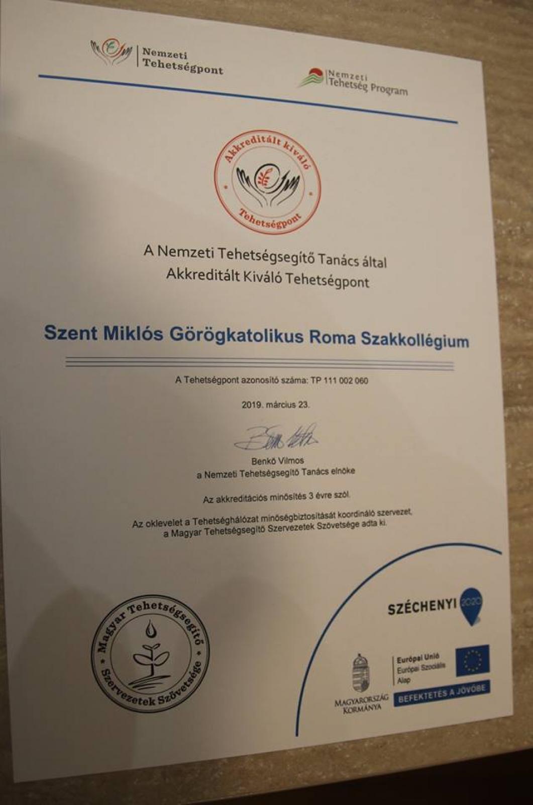 Ez a cím azt jelenti, hogy az a szakmai munka, mely az intézményben zajlik, a hallgatók kutatási és konferencia tevékenysége, képesítései, versenyeken elért eredményei példaértékűek a hazánkban működő tehetséggondozással foglalkozó műhelyek előtt. Ennek az elnyeréséhez egyaránt szükség van a szakmai stáb következetes követelményrendszerére, a hallgatók elhivatottságára a választott hivatásuk és a keresztény értelmiségivé válás iránt. Közös munka eredménye ez az elismerés, amelyért közösen is adtunk hálát. Ennek keretében Hodászon a helyi cigány egyházközség templomában vettünk részt Szent Liturgián.