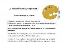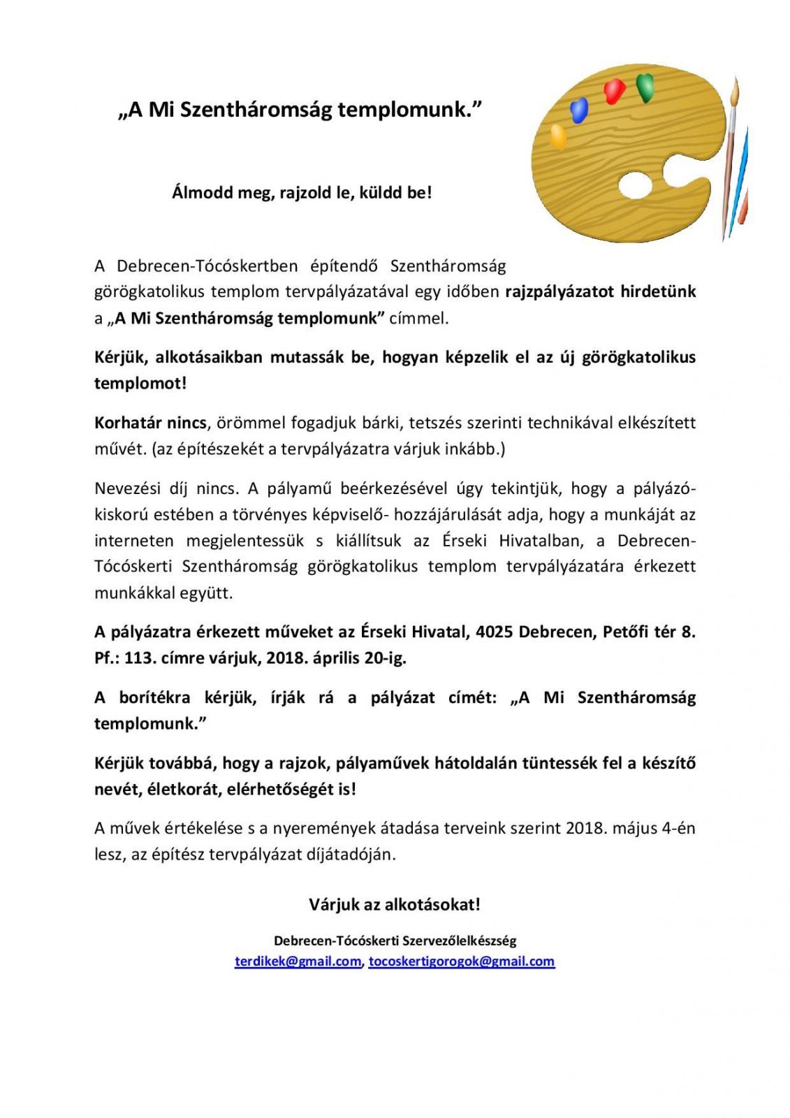 Mint ismert a Hajdúdorogi Főegyházmegye Debrecenben, a Tócóskert lakótelepen egy új, 150 fő befogadóképességű görögkatolikus templomot épít. A templom a Szentháromság nevet kapja. Ehhez kapcsolódóan az alkotókedvűek rajzpályázaton mutathatják meg, szerintük hogyan nézhetne ki az új templom.