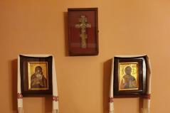 Nem tudom, lehetséges-e a képernyőt az ikonok közelébe állítani. Vagy fordítva, a képernyő fölé, alá, mellé helyezni egy vagy több ikont. Alakítsuk ki a saját templomunkat odahaza! Tegyünk melléje gyertyát vagy mécsest. Legyünk ebben leleményesek, hogyan tudjuk kialakítani ezt a kis házi szentélyt, s – bármily furcsa – belekomponálva a képernyőt is. Ráadásul ezzel időben el kell készülni, hiszen nem szerencsés csalni, hogy majd fölvételről megnézzük, amit a templomban végeztek. Sokat számít, ha együtt, egyszerre imádkozhatunk. De talán azt az időt, amíg odaérnénk a templomba, ezzel az előkészülettel töltjük, nagyjából egyszerre érünk oda a fölkészülésben. A szobában elkészült a szokatlan templomtér, a templomban pedig minden elkészült, hogy kezdődhessék az imádság.