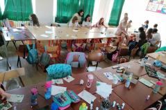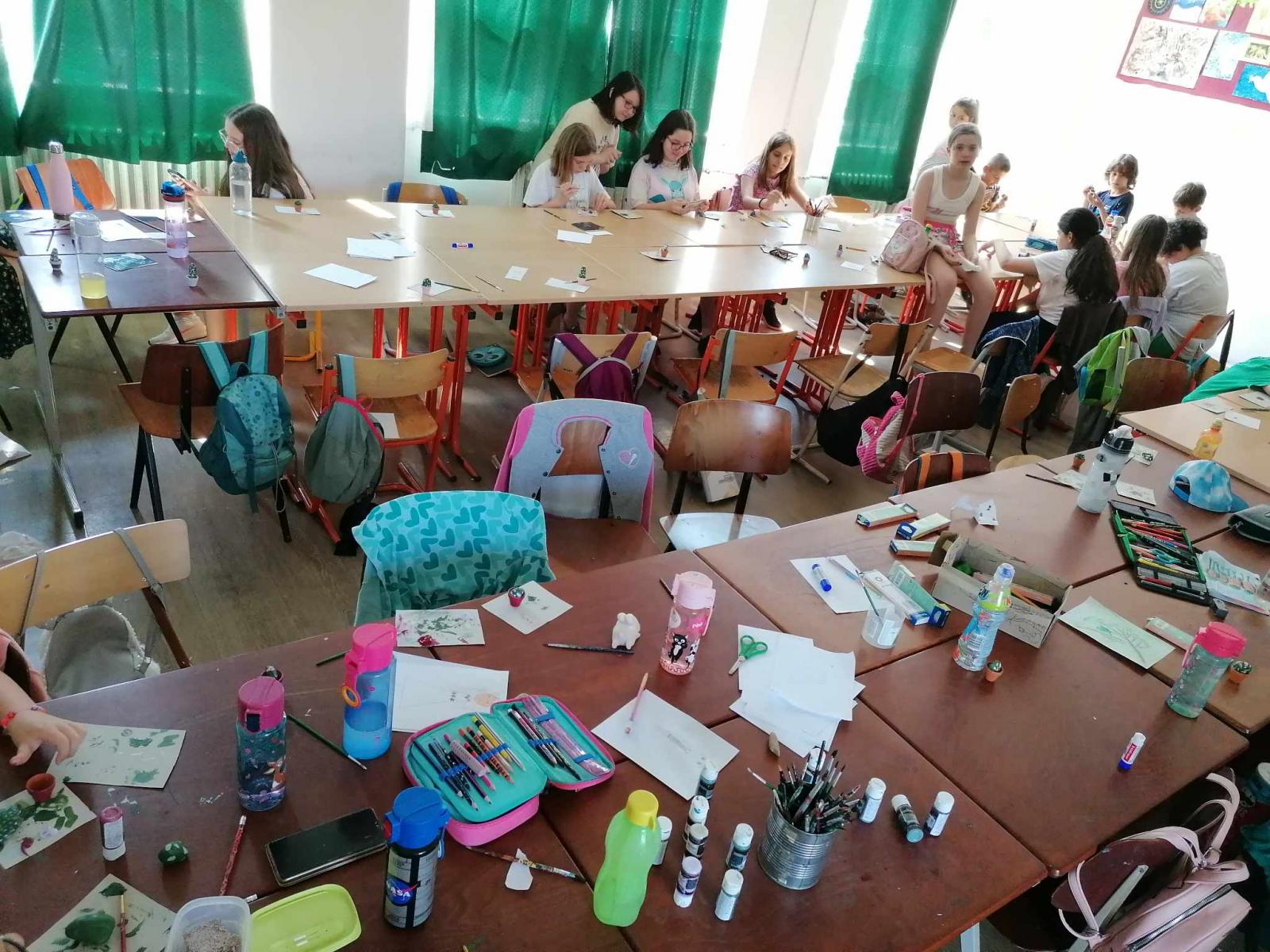 A hétfői napon megismertük, illetve felidéztük a teremtés történetét, beszélgettünk a teremtés szépségéről, az élet és a teremtett dolgok védelmének fontosságáról. Délután, és a hét első felében apró, de annál értékesebb „emléktárgyakat” is készítettünk, kis cserepes kaktuszt, kartonállatkákat, értékes festményt és egy tábori pólót is, amelyek szintén a teremtett világra emlékeztetnek majd. Emellett természetesen óriási lelkesedéssel hozzáláttunk a húsz méter hosszú festmény elkészítéséhez, amit a nagy meleg ellenére péntekre sikerült befejezni.