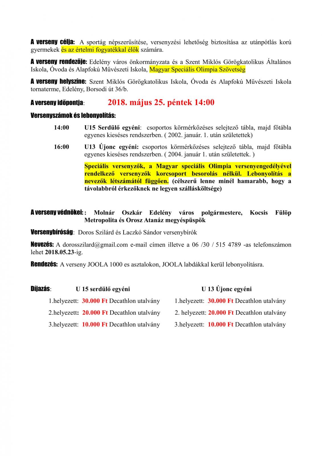 Az országos asztalitenisz verseny előtti napon az utánpótlás számára is rendeznek megmérettetést Edelényben. A részletes versenykiírás és a jelentkezés részletei az alábbiakban megtalálhatók.