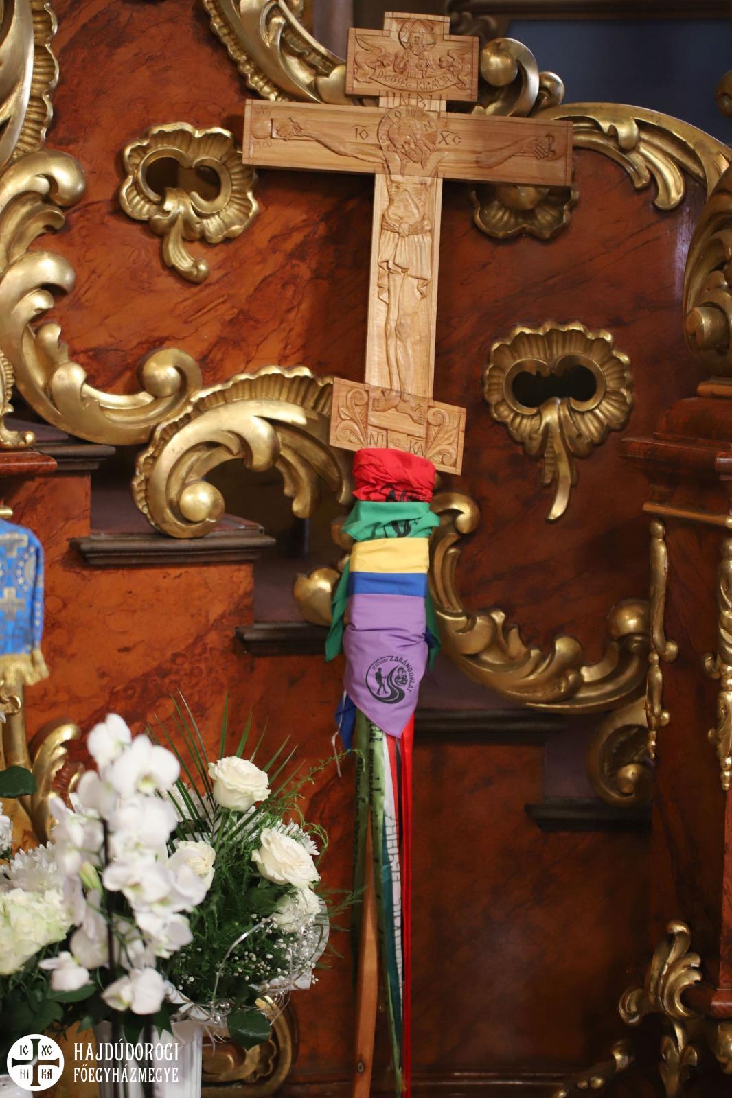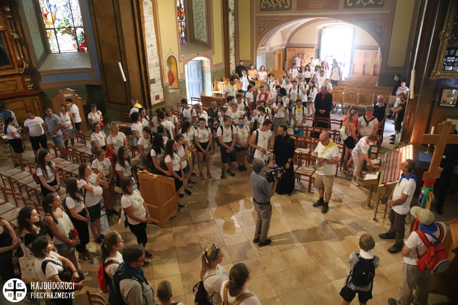 „Ideértünk az Istenszülő közelébe és tudjuk jól, hogy csak az tud megérkezni, aki elindult, aki vette a fáradságot, hogy megértse az idei zarándoklat különlegességét, azt, hogy ez ebben a formában is egy isteni ajándék” – mondta főhelynök atya. Majd felidézte, hogy az elmúlt 17 évben a hála érzésével léptek be a zarándokok a kegytemplomba és igyekeztek őszintén hálát adni a végigzarándokolt, imádkozott, gyalogolt napokért, hálát adni önmagunkért, megköszönve a Jóistennek azokat az erőforrásokat, amikkel megajándékozta őket a gyalogút során.