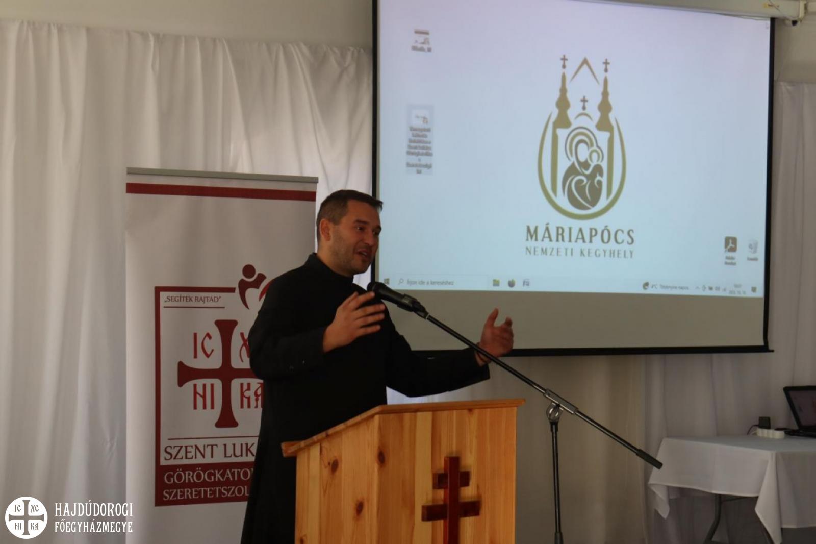 A lelki töltekezést is szolgáló Szent Lukács nap a Máriapócsi Kegytemplomban kezdődött, amelyet Kapin István atya, a Szent Lukács Görögkatolikus Szeretetszolgálat lelki igazgatója igehirdetéssel indított útjára. Az atya szólt arról, hogy mindannyian más-más helyről érkeztek, de „bármilyen úton is indulunk el életünk, munkánk során, a templomba érve csak akkor tud a Jó Isten segíteni rajtunk, erőt adni, ha tudjuk, hogy mit szeretnénk elérni, mi a célunk” – mondta Kapin István, majd a több mint 300 éves kegytemplomban mondott köszönetet a szociális ágazatban dolgozó munkatársak áldozatos munkájáért. - A lelki nap akkor jó, ha a résztvevő önző tud lenni, mert az év 365 napján elsősorban másokkal foglalkozik, ma pedig legyenek befogadóak az elhangzó üzenetekre – mondta az Emmánuel Zarándokközpontba visszatérve Pindzsu István atya, aki „házigazdaként” köszöntötte a résztvevőket.